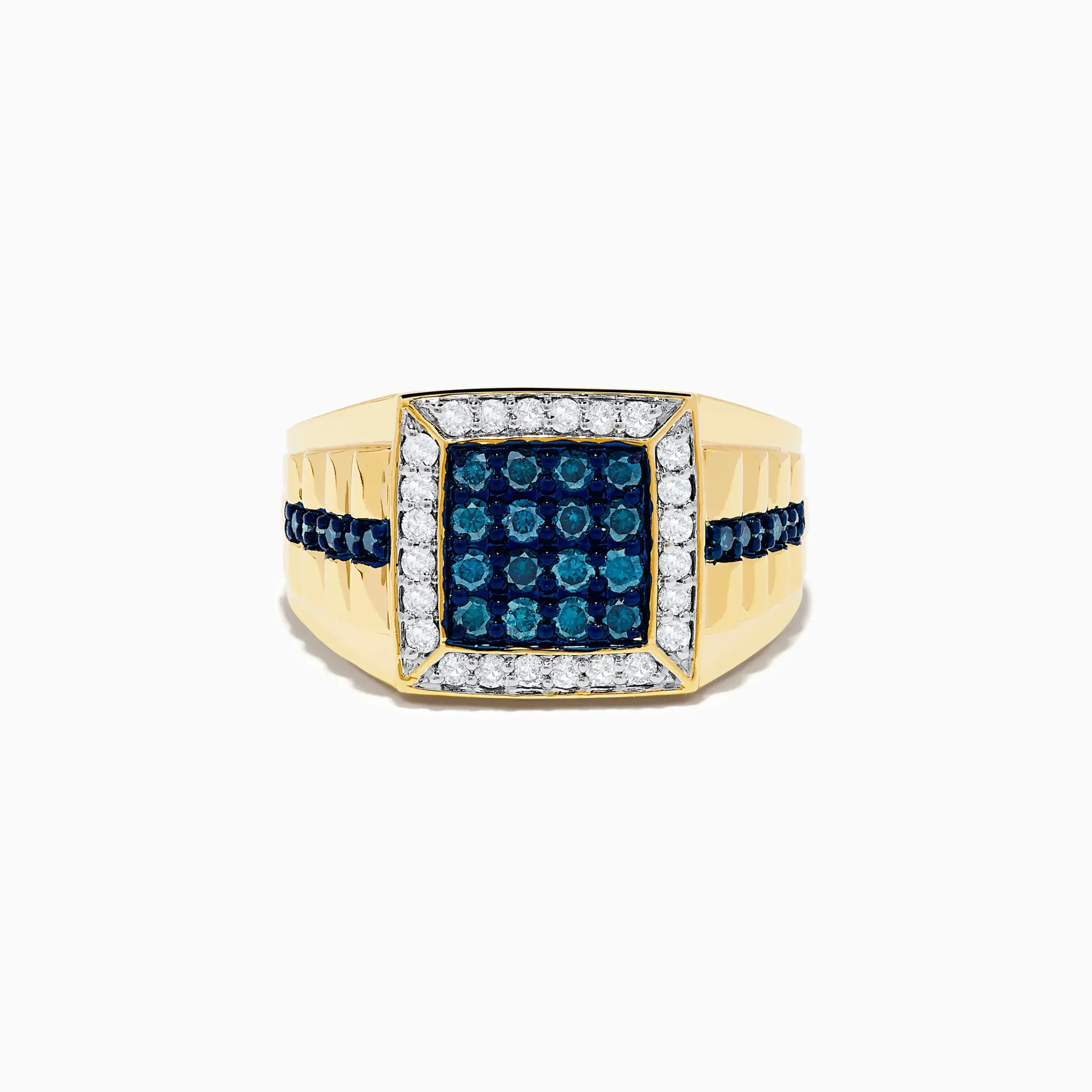 Men’s 14K Yellow Gold White and Blue Diamond Ring