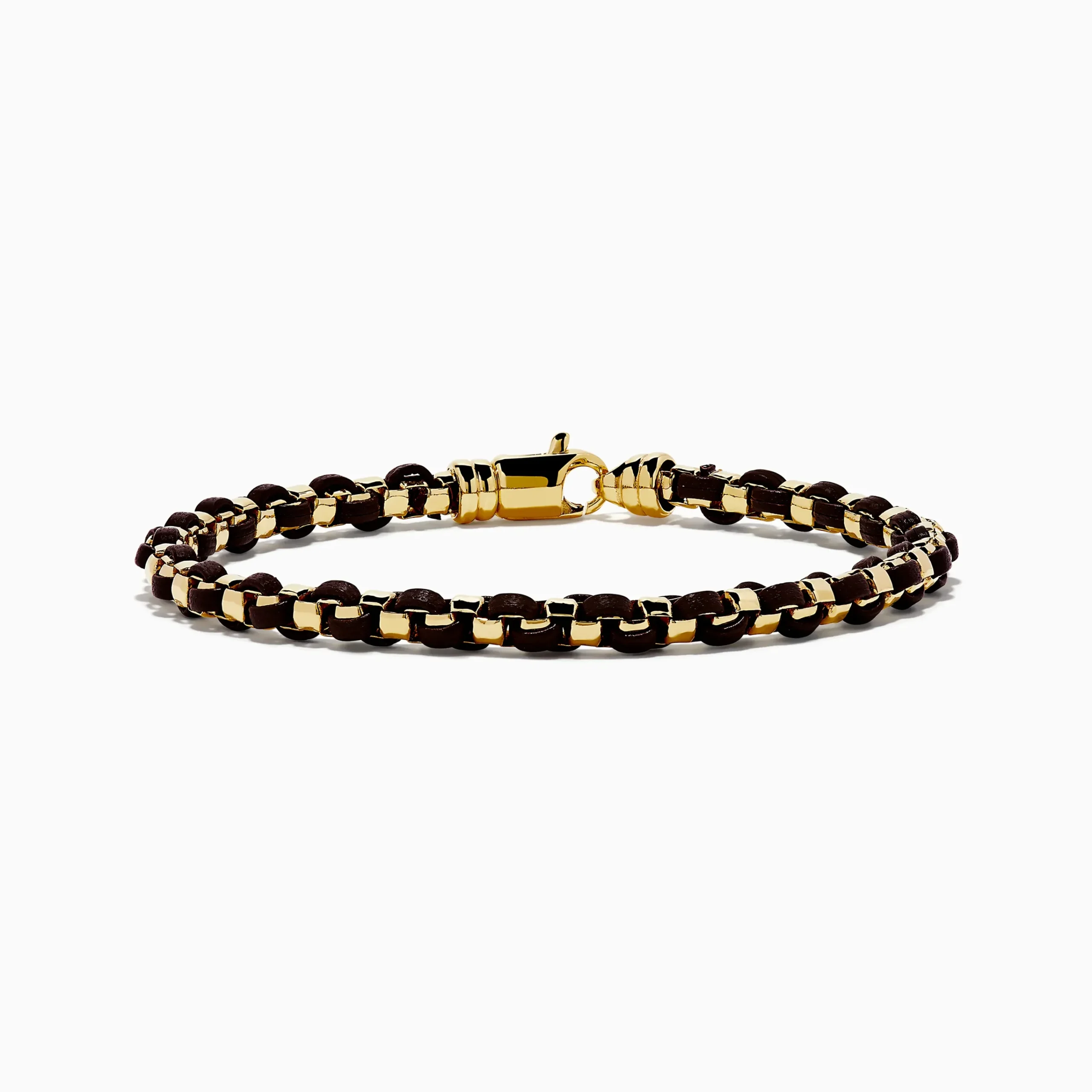 Men’s 925 Gold Plated Silver Leather Woven Bracelet