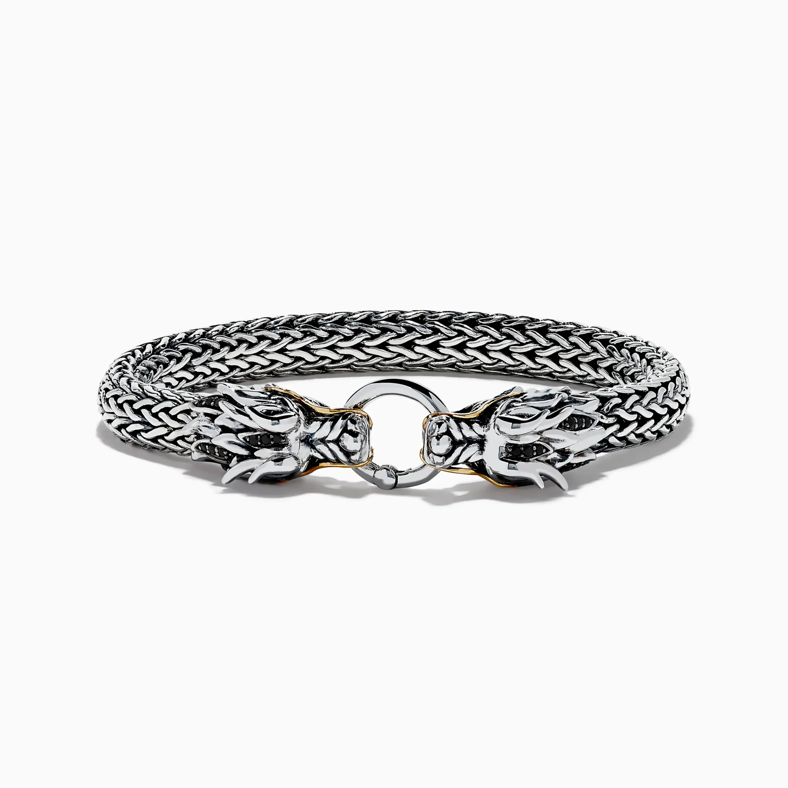 Men’s 925 Silver & 14K Yellow Gold Black Sapphire and Tsavorite Dragon Bracelet
