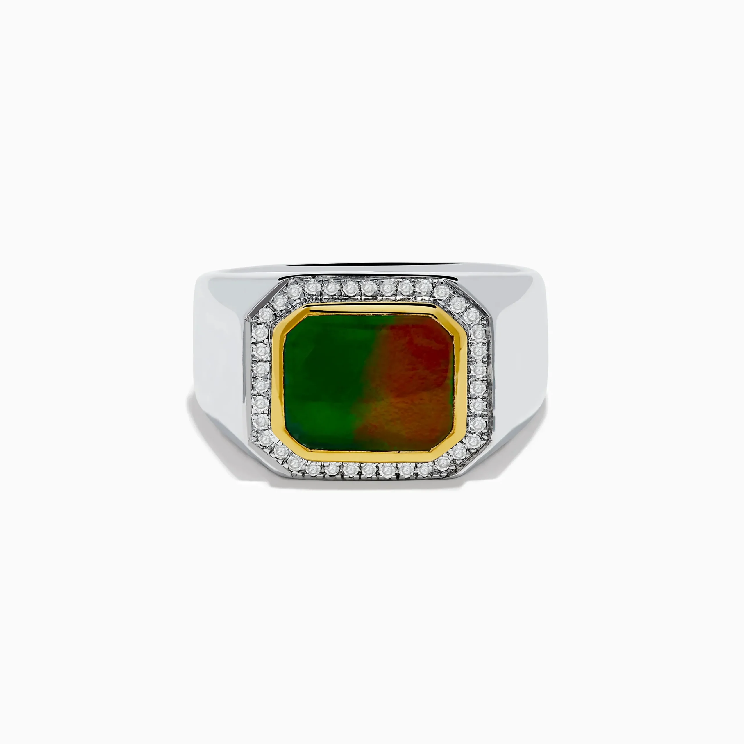 Men’s 925 Sterling Silver Ammolite and Diamond Ring