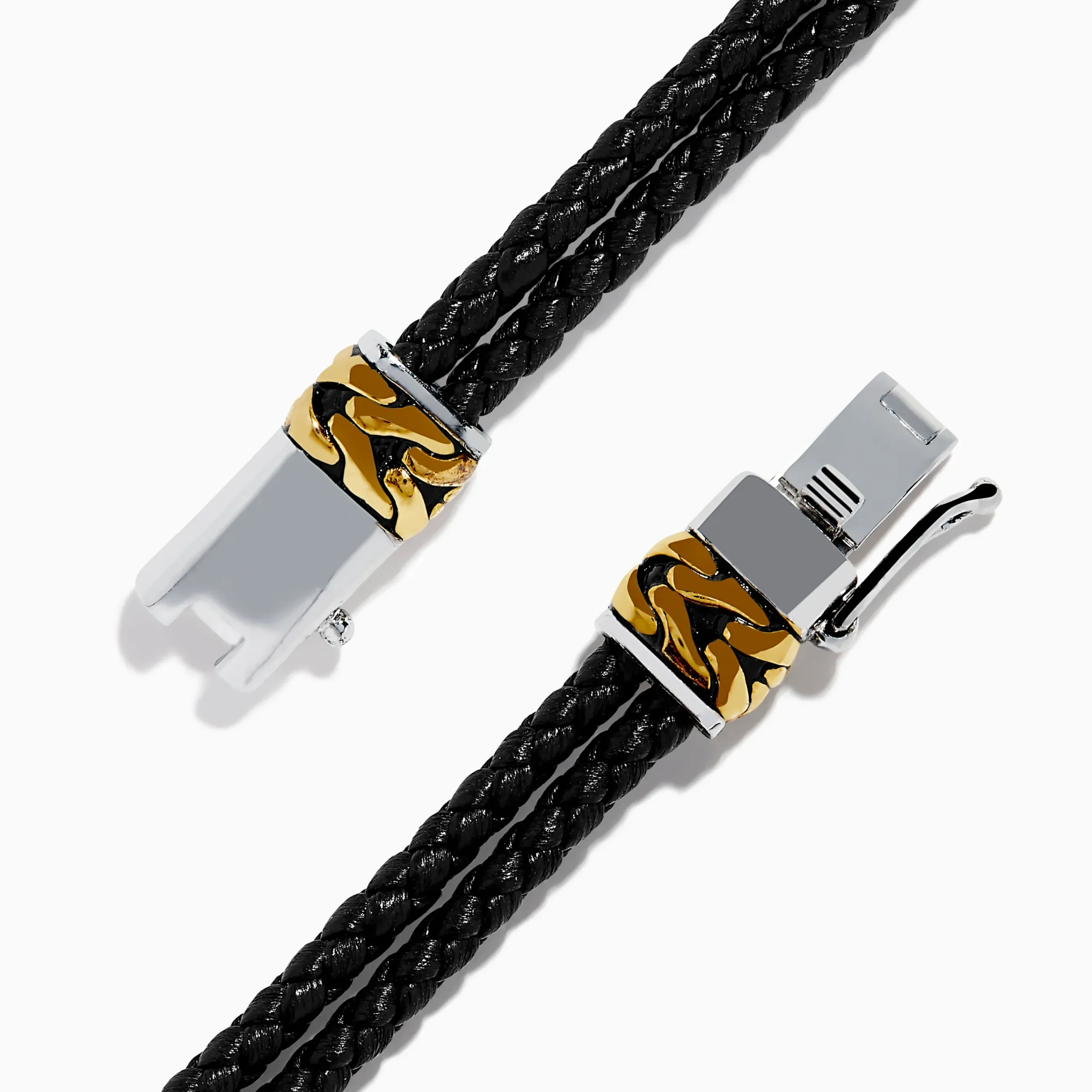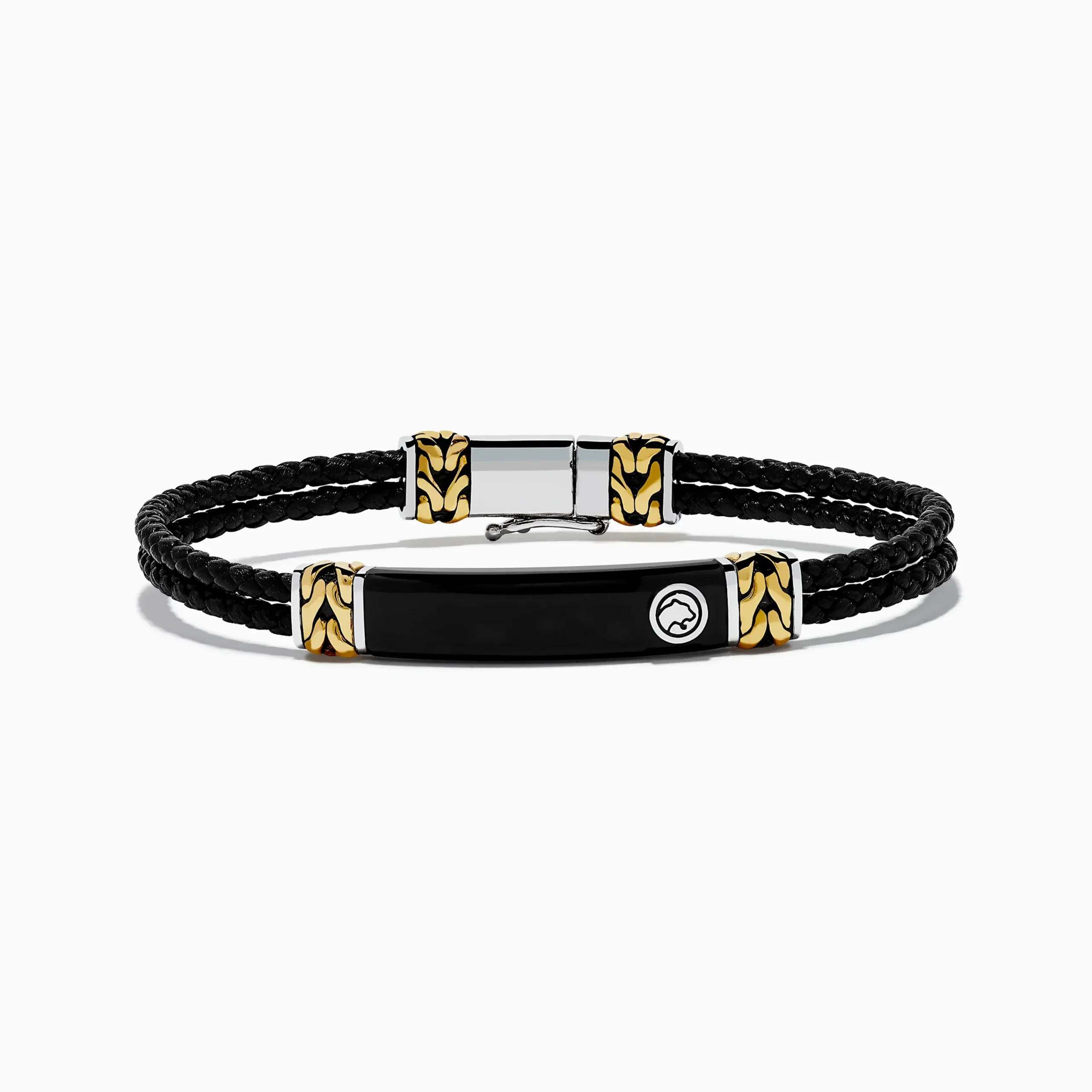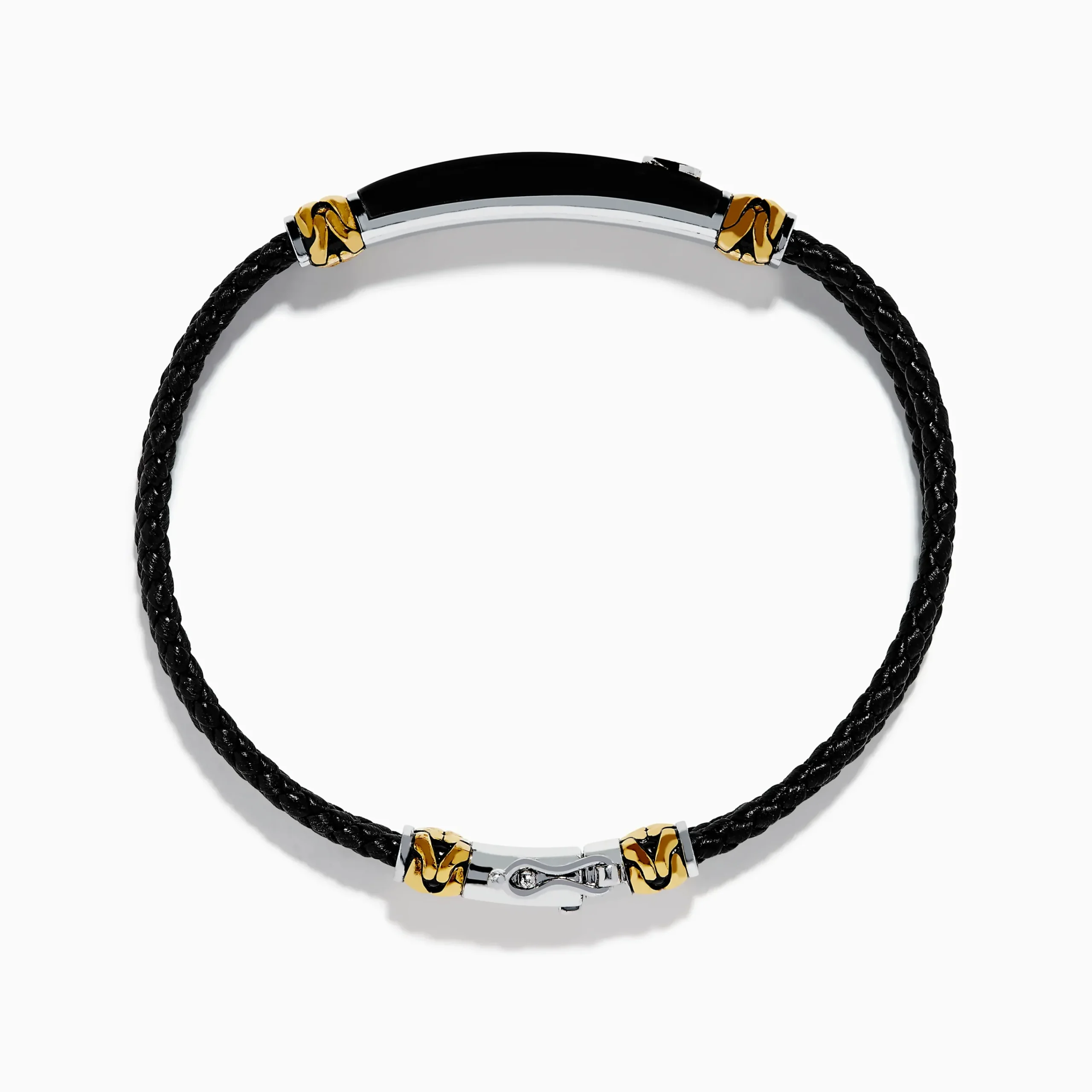 Men’s 925 Sterling Silver and Leather Onyx Bracelet