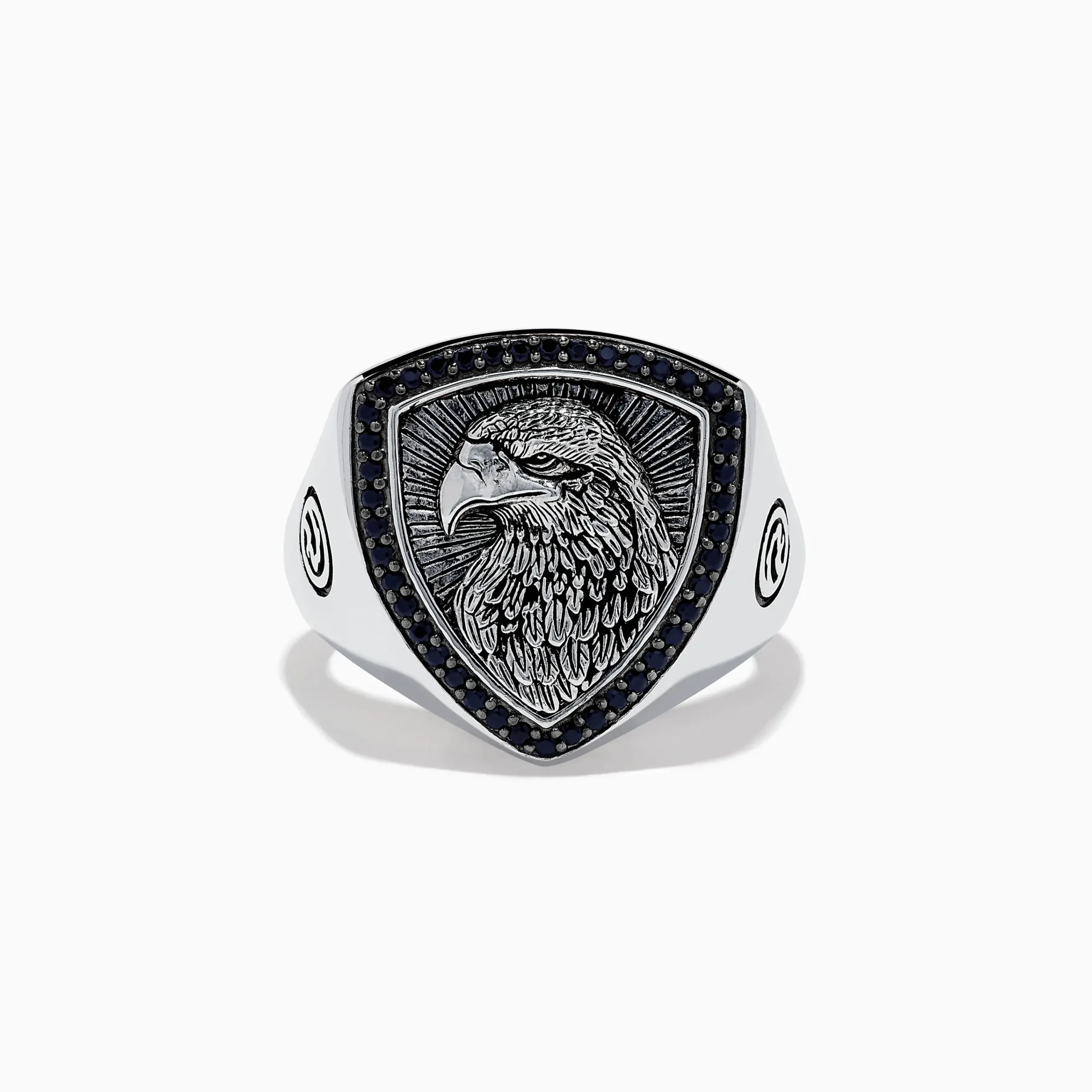 Men’s 925 Sterling Silver Black Spinel Eagle Shield Ring