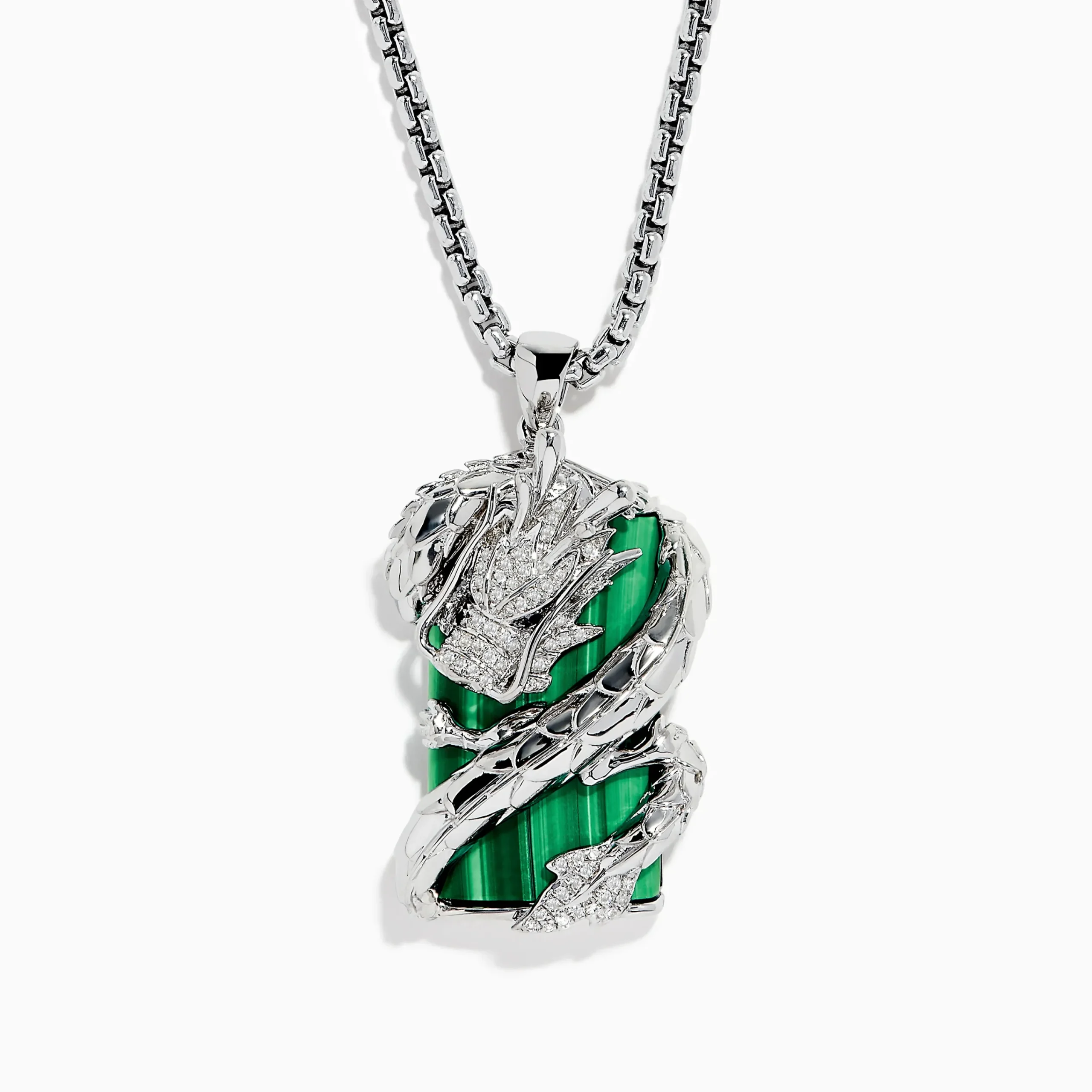 Effy Men’s 925 Sterling Silver Malachite and Diamond Dragon Pendant