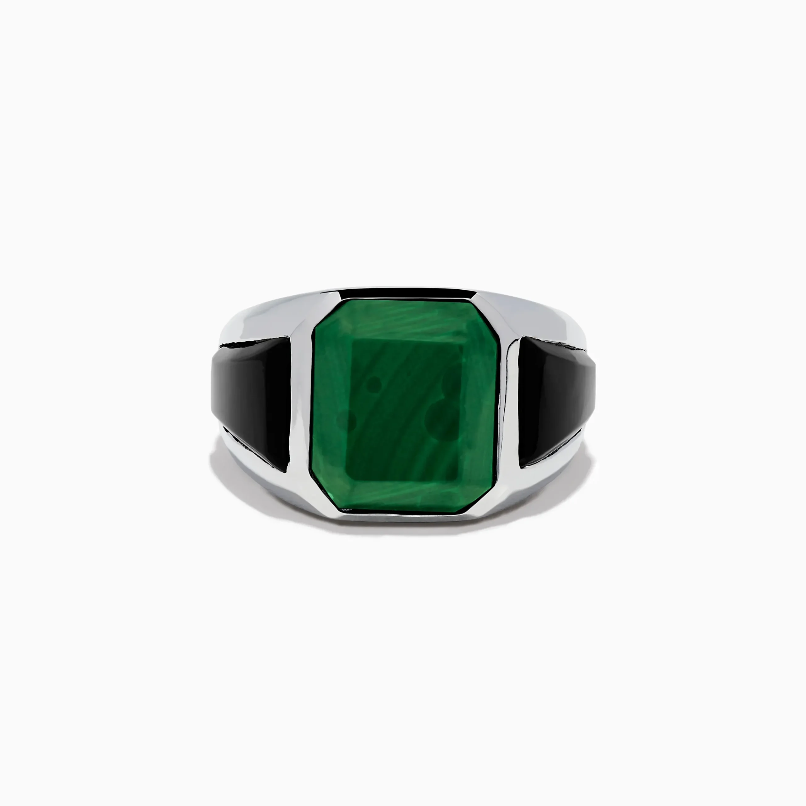 Effy Men’s 925 Sterling Silver Malachite and Onyx Ring