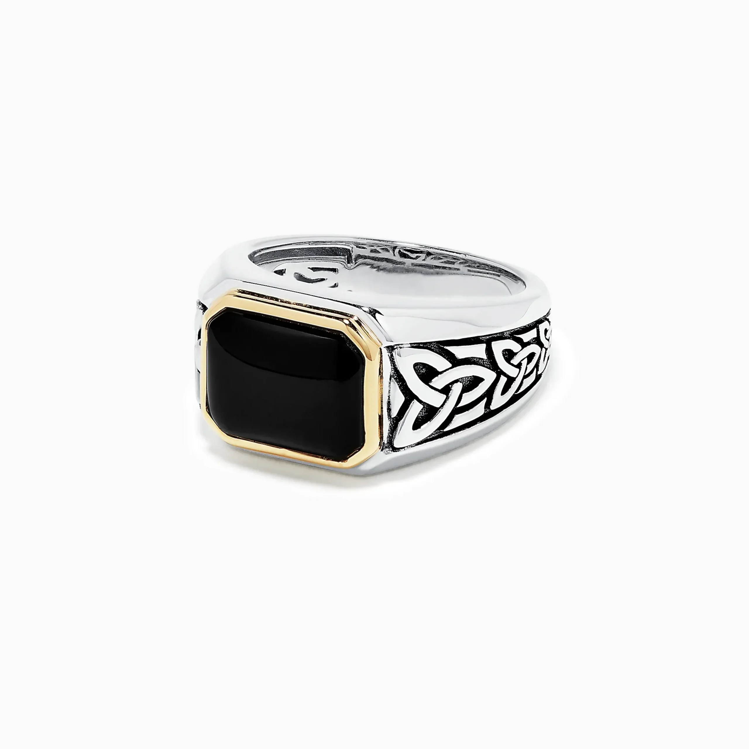 Effy Men’s Sterling Silver and 14K Yellow Gold Onyx Ring, 3.40 TCW