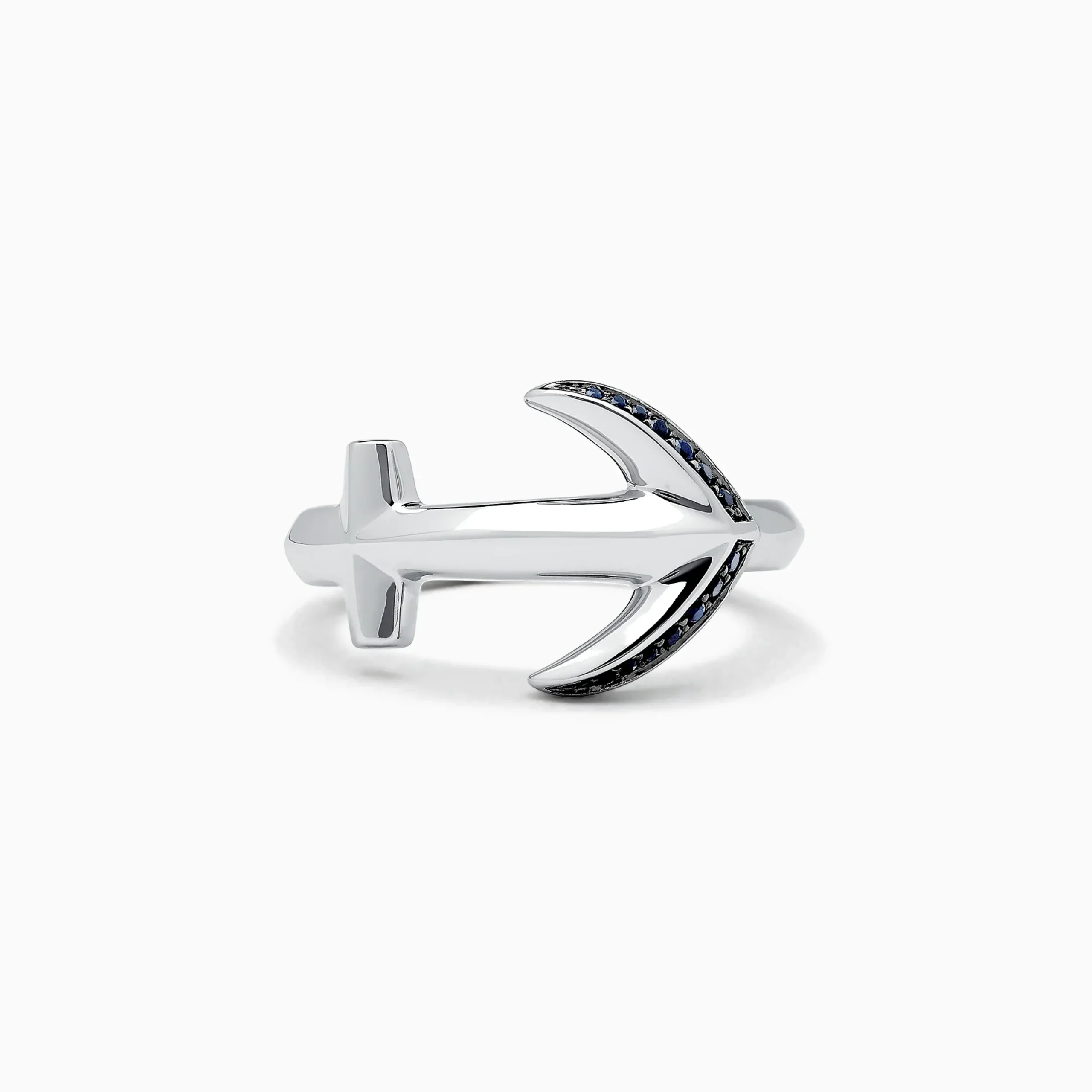 Effy Men’s Sterling Silver and Black Sapphire Anchor Ring, 0.14 TCW