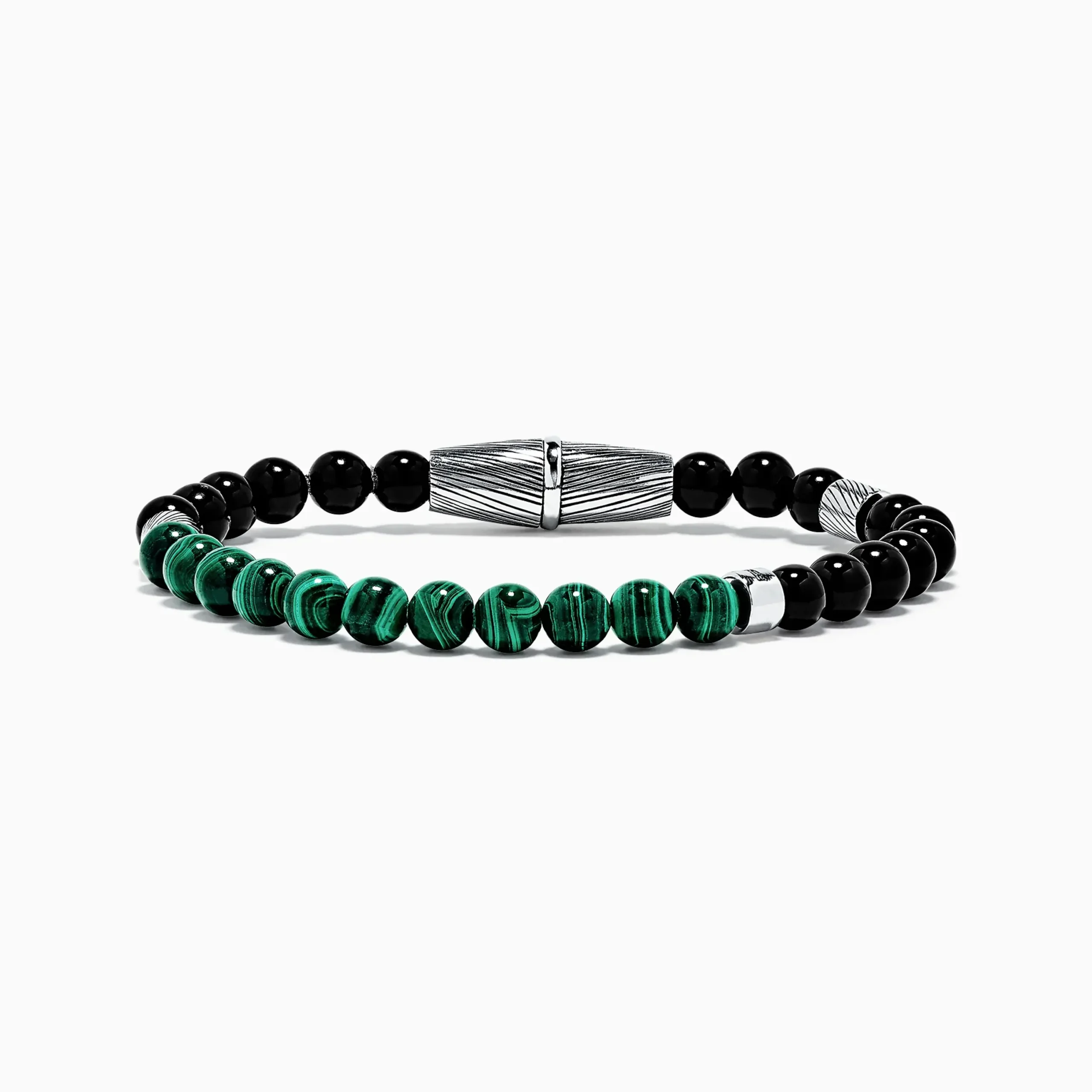 Effy Men’s Sterling Silver Beaded Onyx and Malachite Bracelet