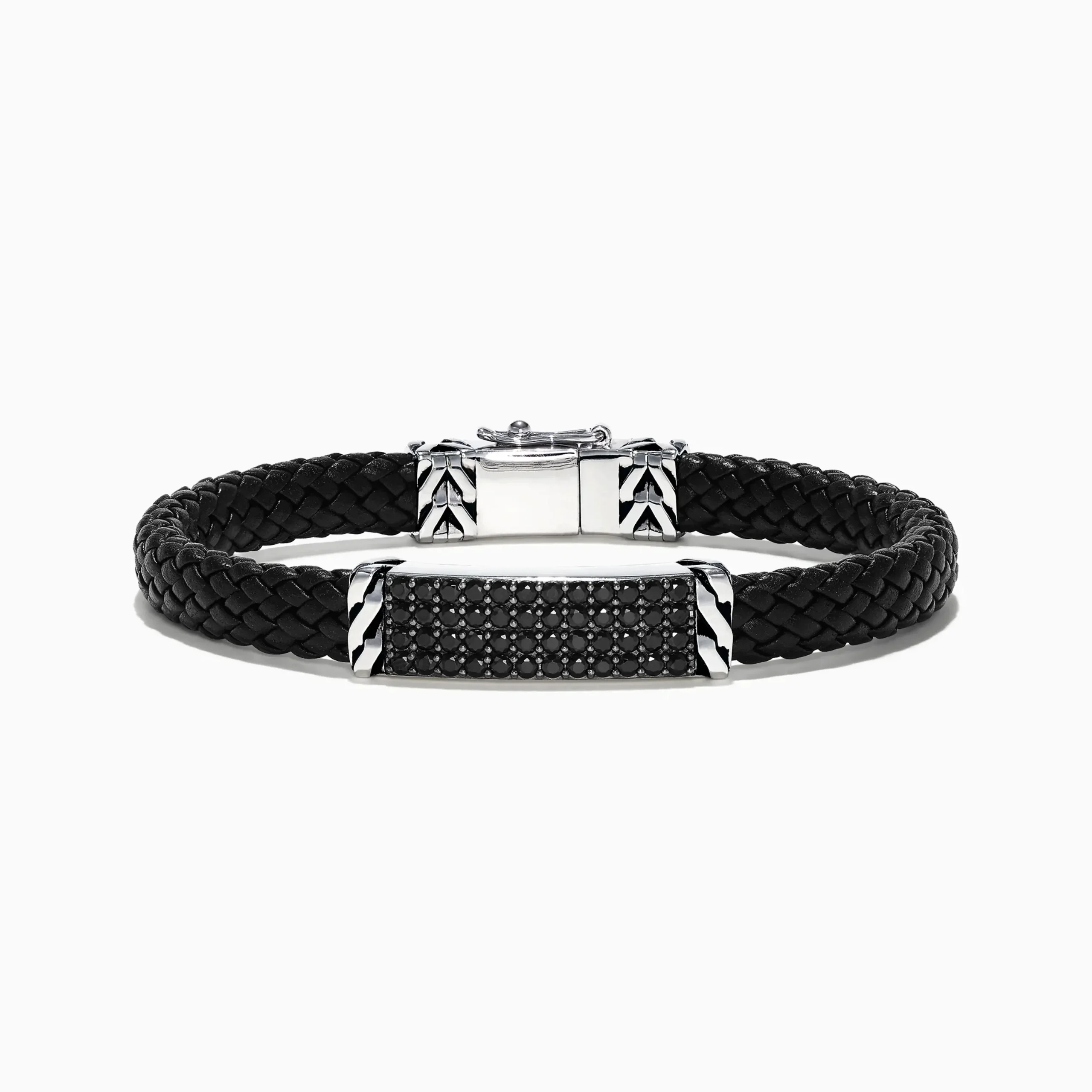 Effy Men’s Sterling Silver Black Spinel Leather Bracelet, 2.11 TCW
