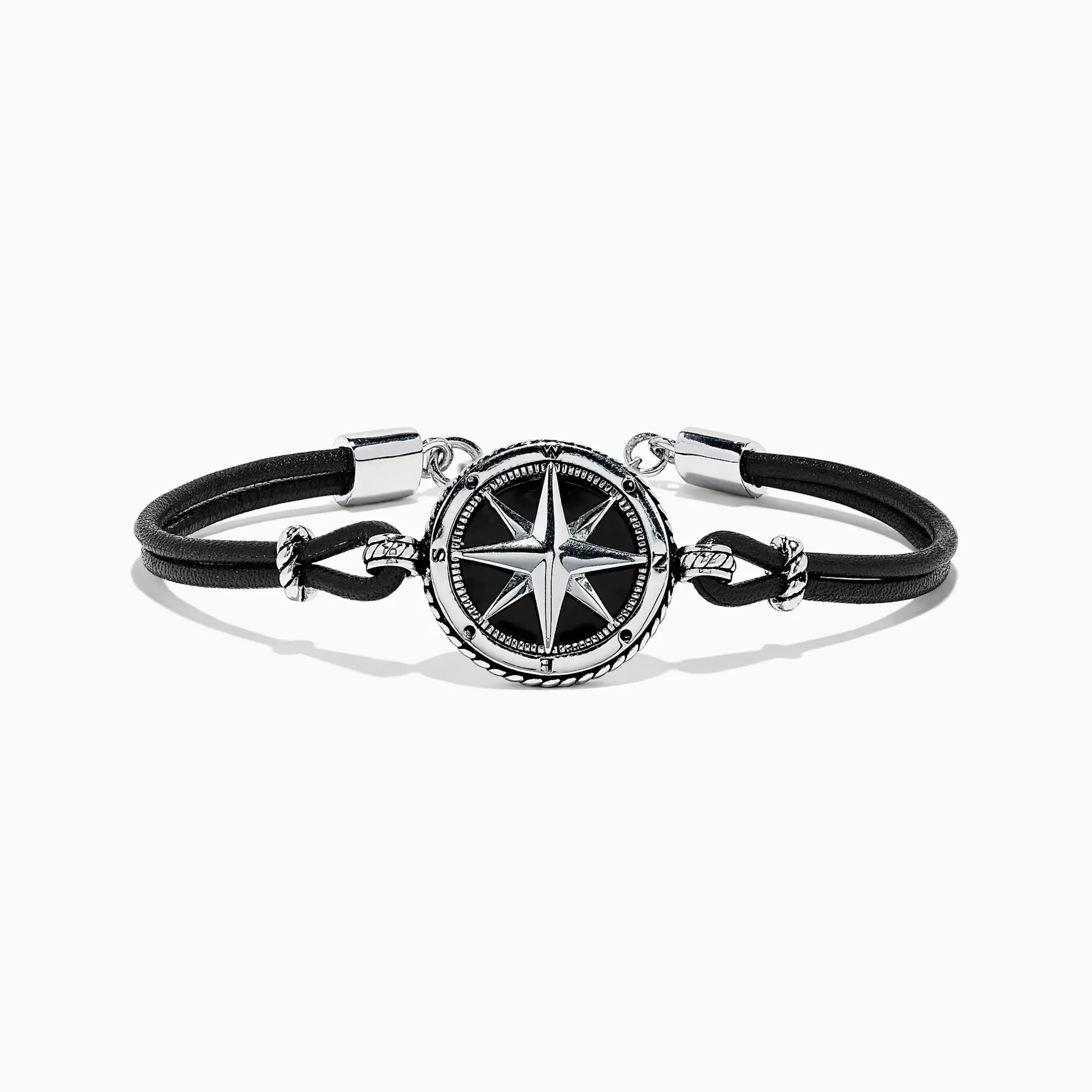 Effy Men’s Sterling Silver Onyx Compass Leather Bracelet, 4.00 TCW