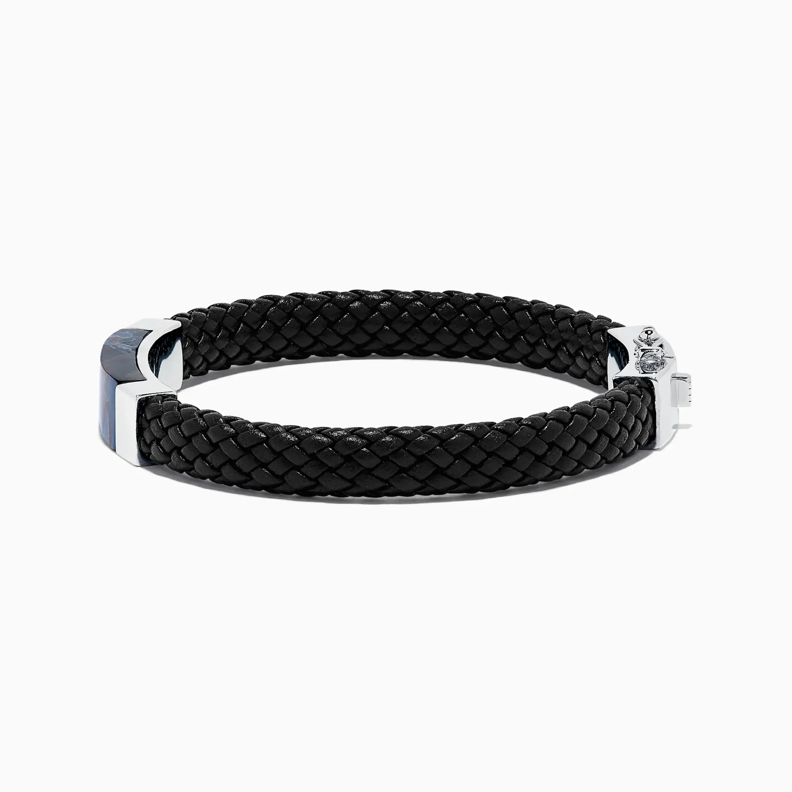 Effy Men’s Sterling Silver Pietersite Woven Leather Bracelet, 12.50 TCW