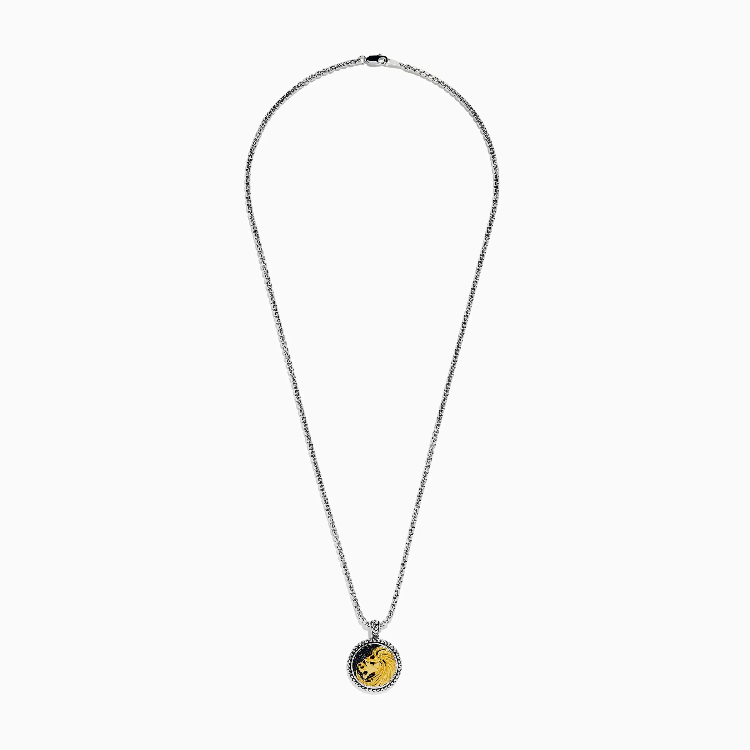 Effy Men’s Sterling Silver Sapphire and Yellow Gold Plated Lion Pendant