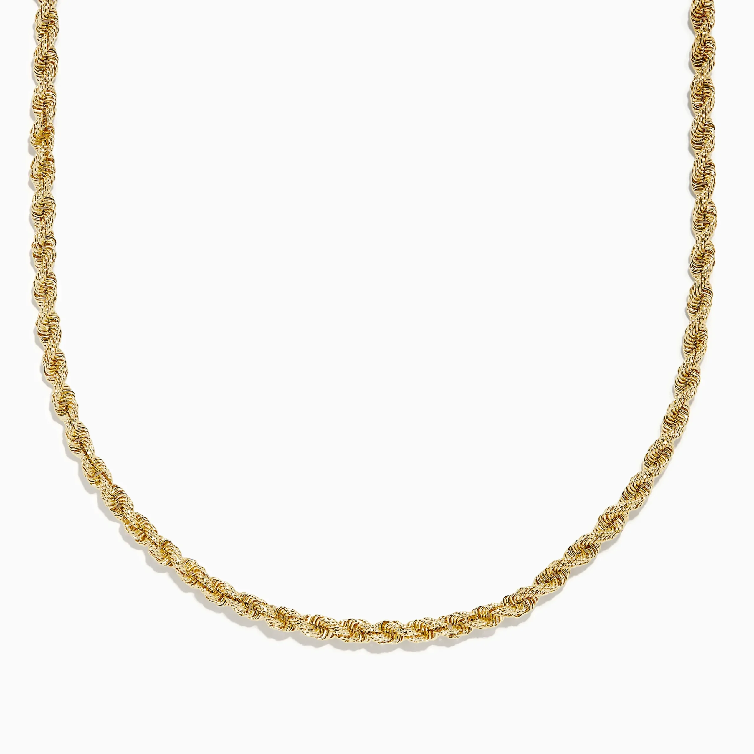 14K Yellow Gold 4mmHollow Spiral Rope 22″ Necklace