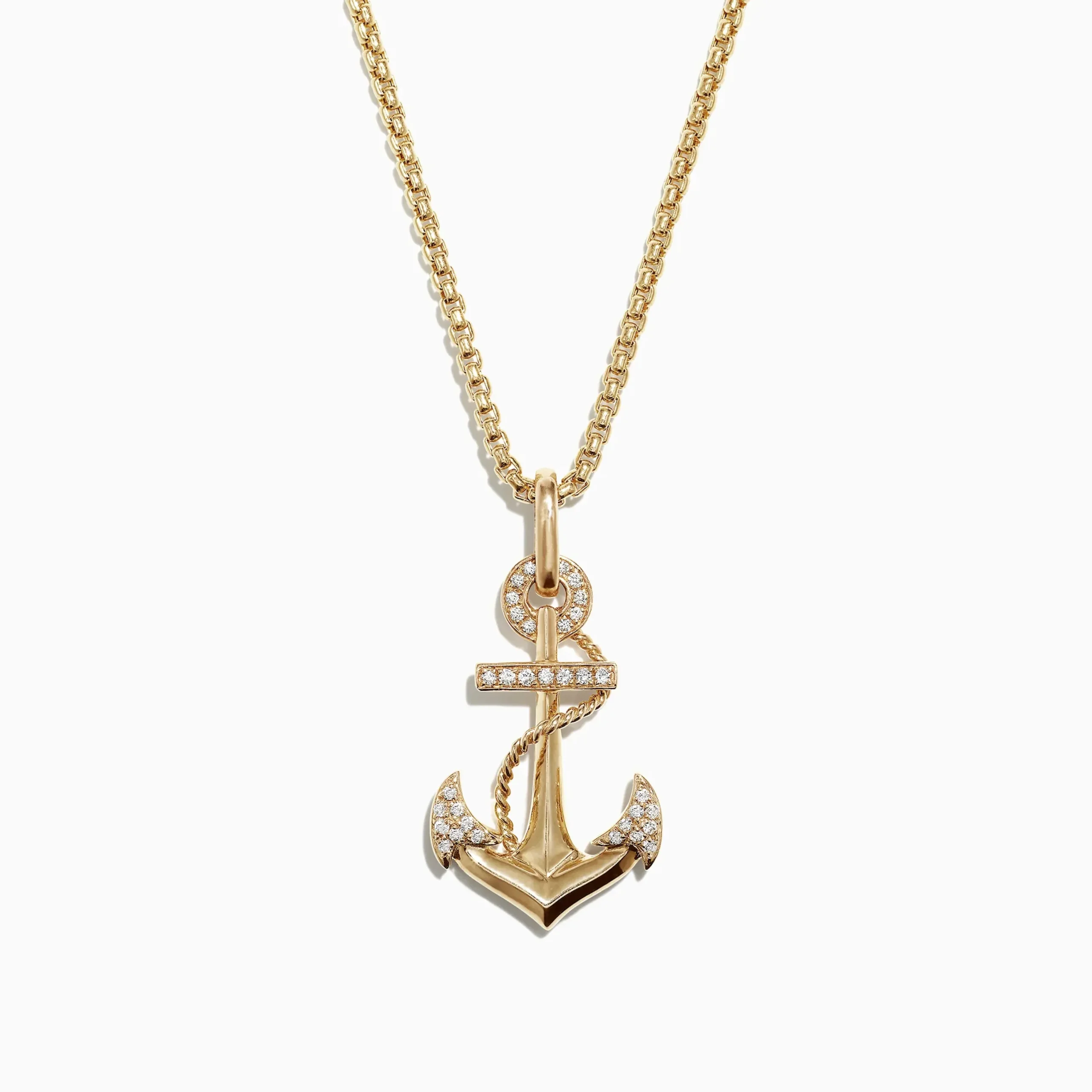 Effy Mens 14K Yellow Gold Diamond Anchor Pendant, 0.18 TCW