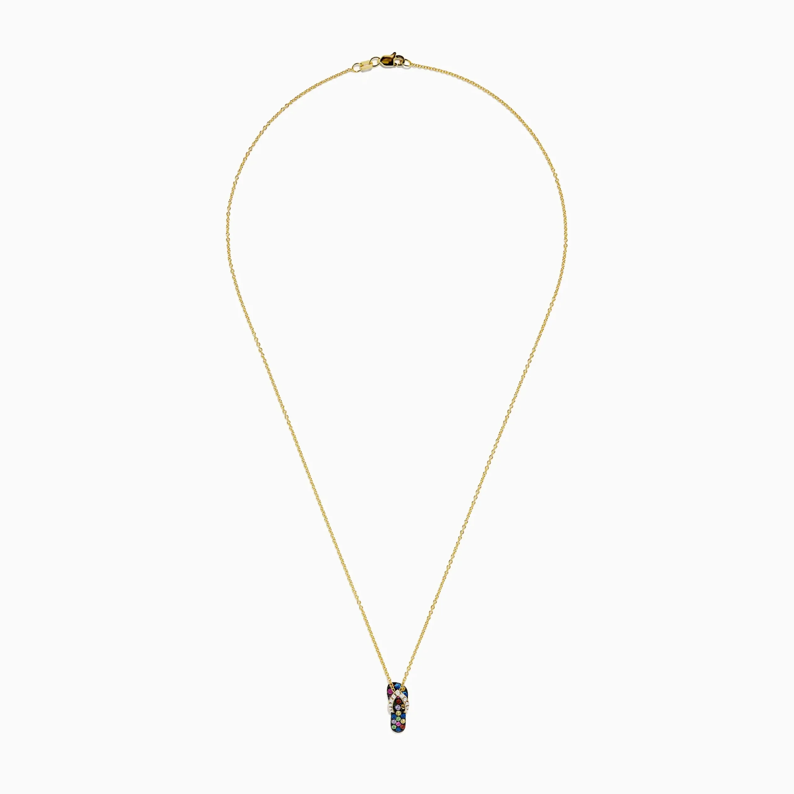 Effy 14K Gold Multi Sapphire and Diamond Flip Flop Pendant, 0.53 TCW