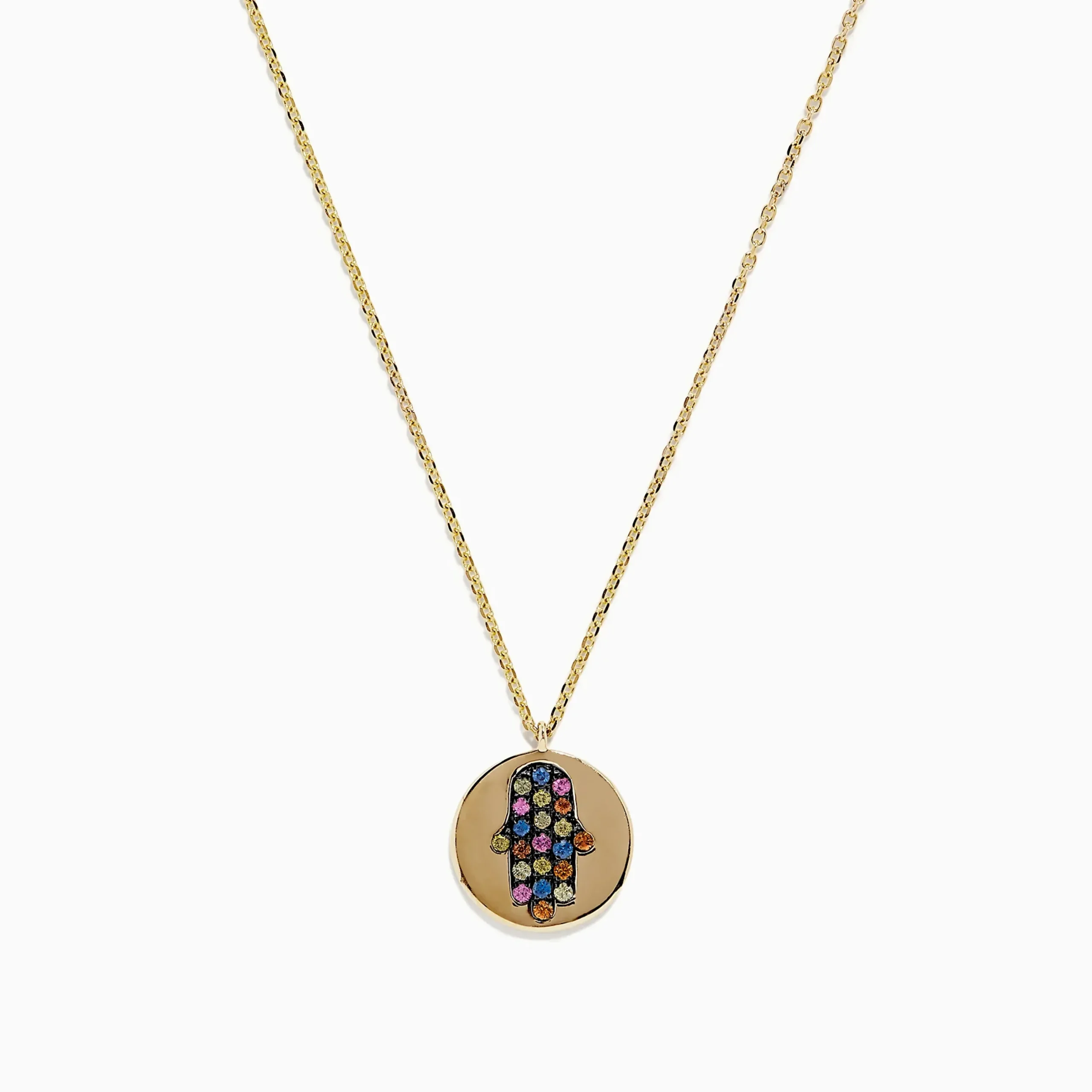 Effy 14K Yellow Gold Multi Sapphire and Diamond Hamsa Necklace, 0.33 TCW