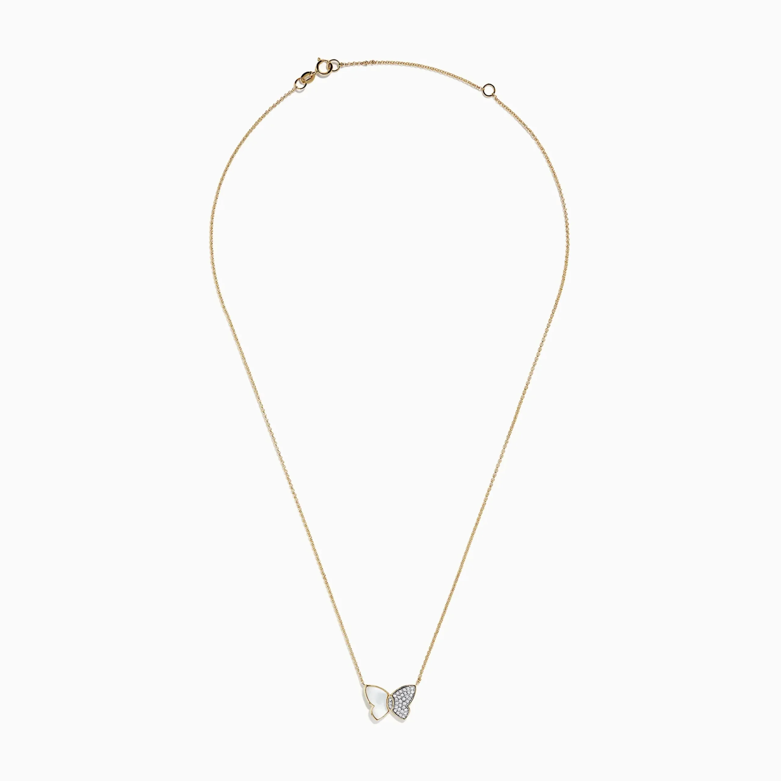 Effy nature 14K Gold Mother of Pearl & Diamond Butterfly Necklace, 0.11 TCW
