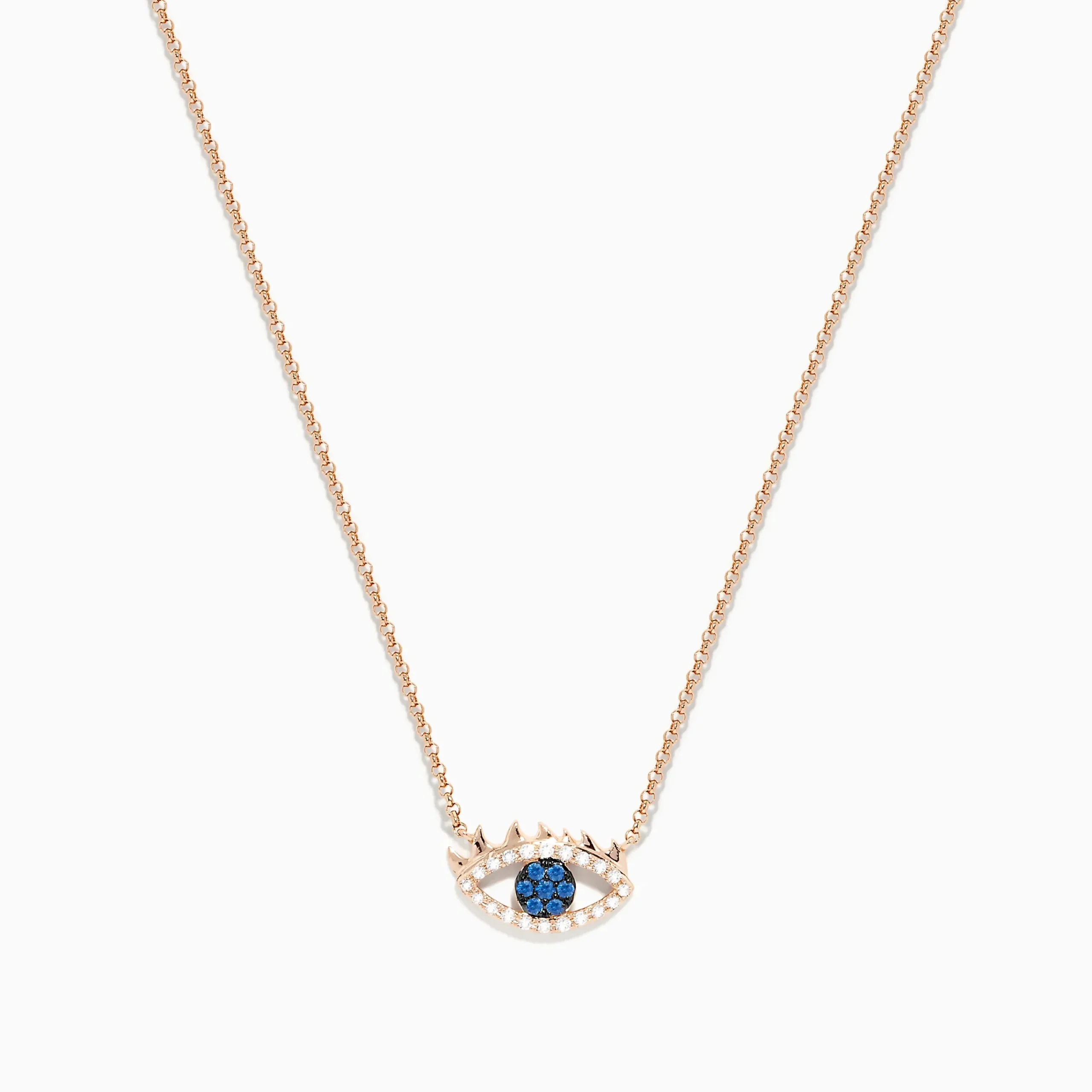 Effy Novelty 14K Rose Gold Blue Sapphire and Diamond Evil Eye Pendant