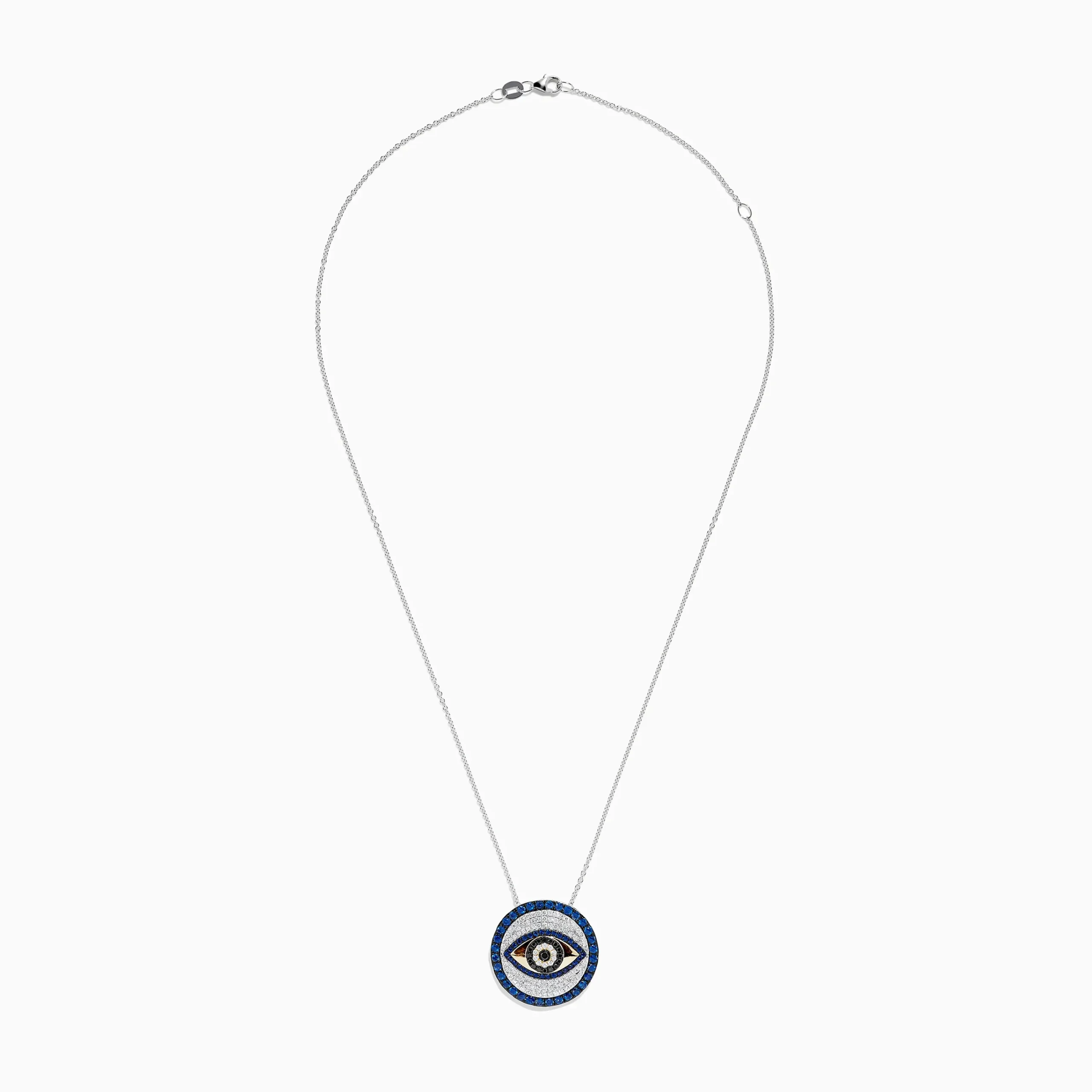 Effy Novelty 14K Two Tone Gold Sapphire and Diamond Evil Eye Pendant