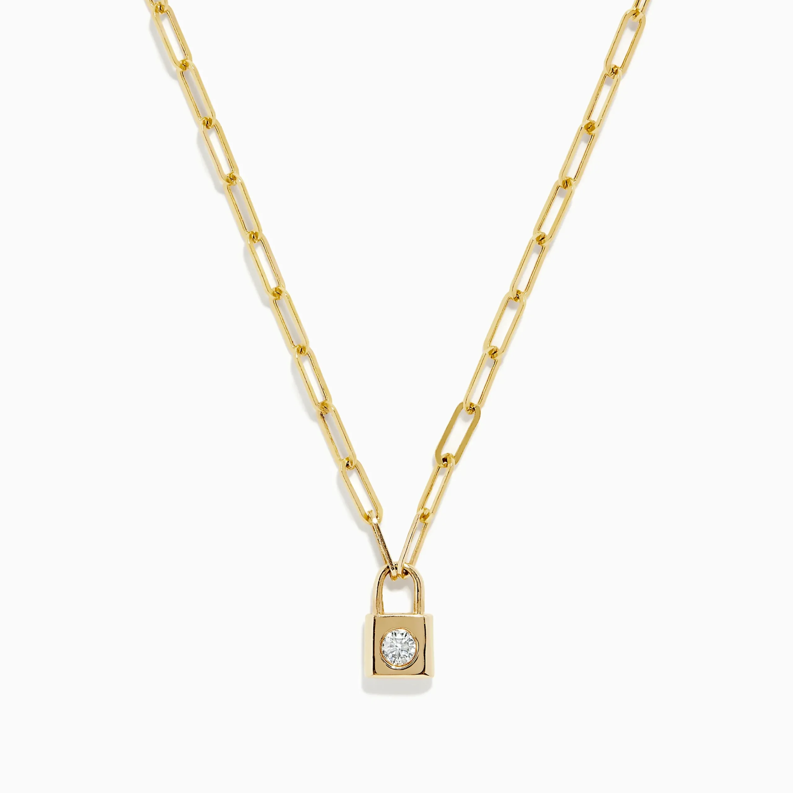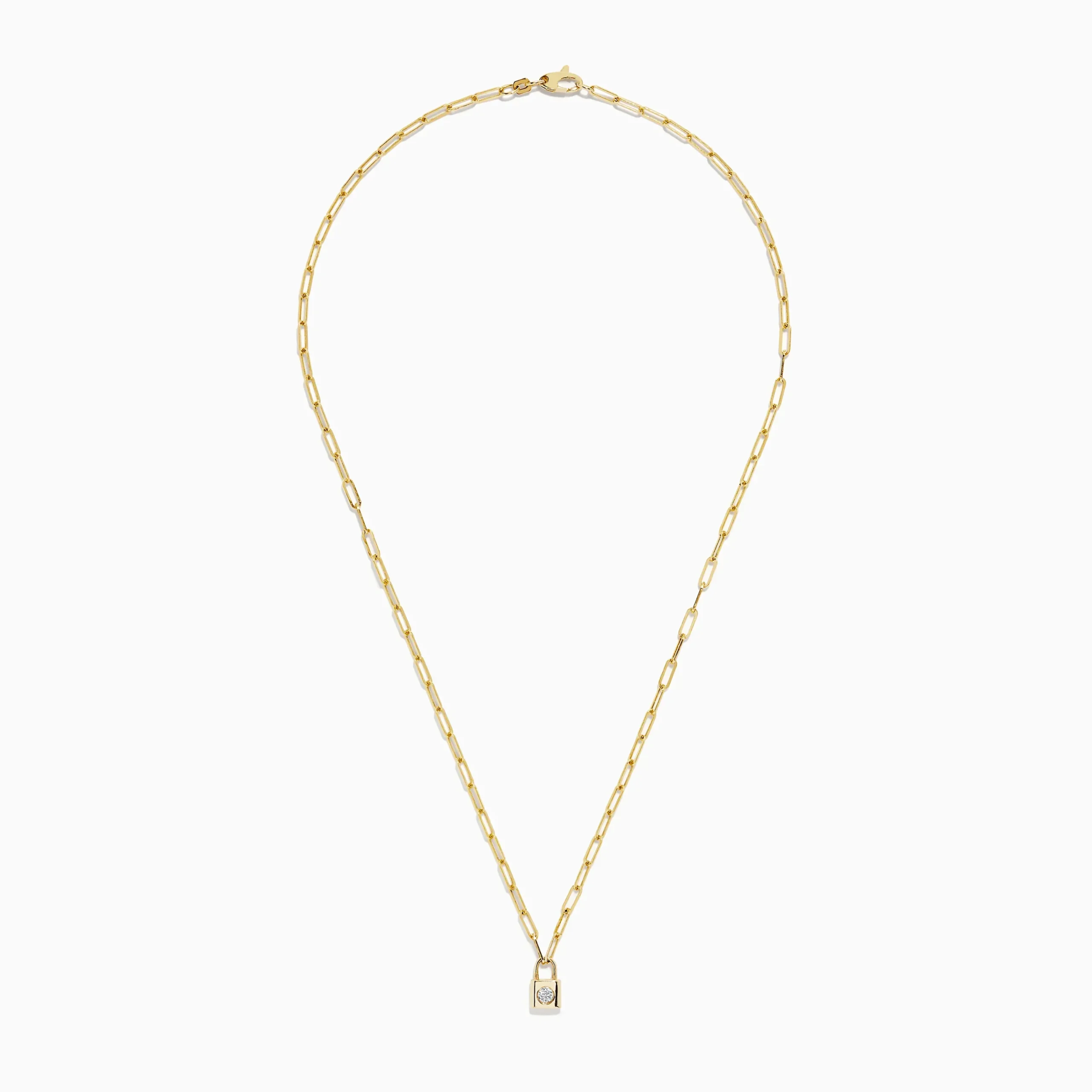 Effy Novelty 14K Yellow Gold Diamond Mini Lock Necklace