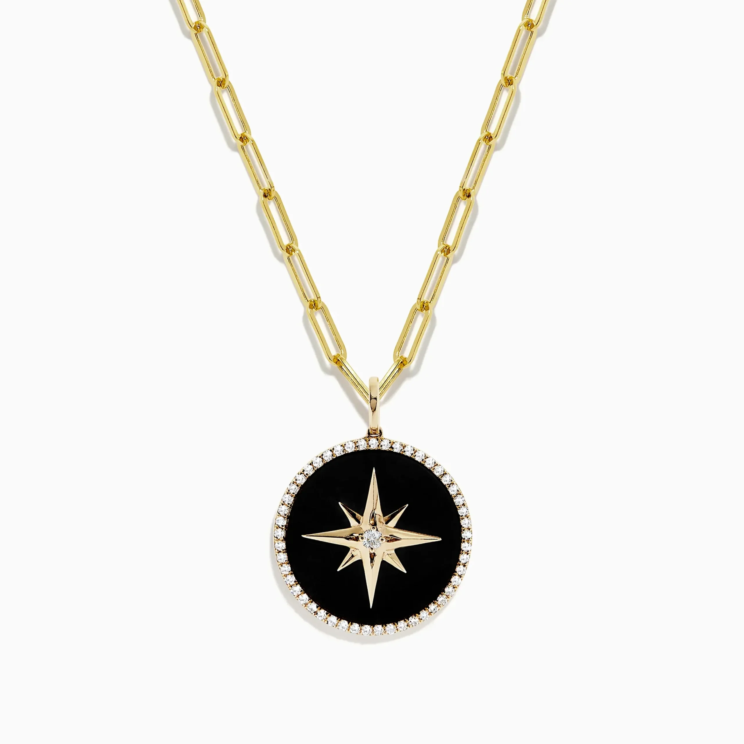 Effy Novelty 14K Yellow Gold Onyx and Diamond Star Coin Pendant, 4.49 TCW
