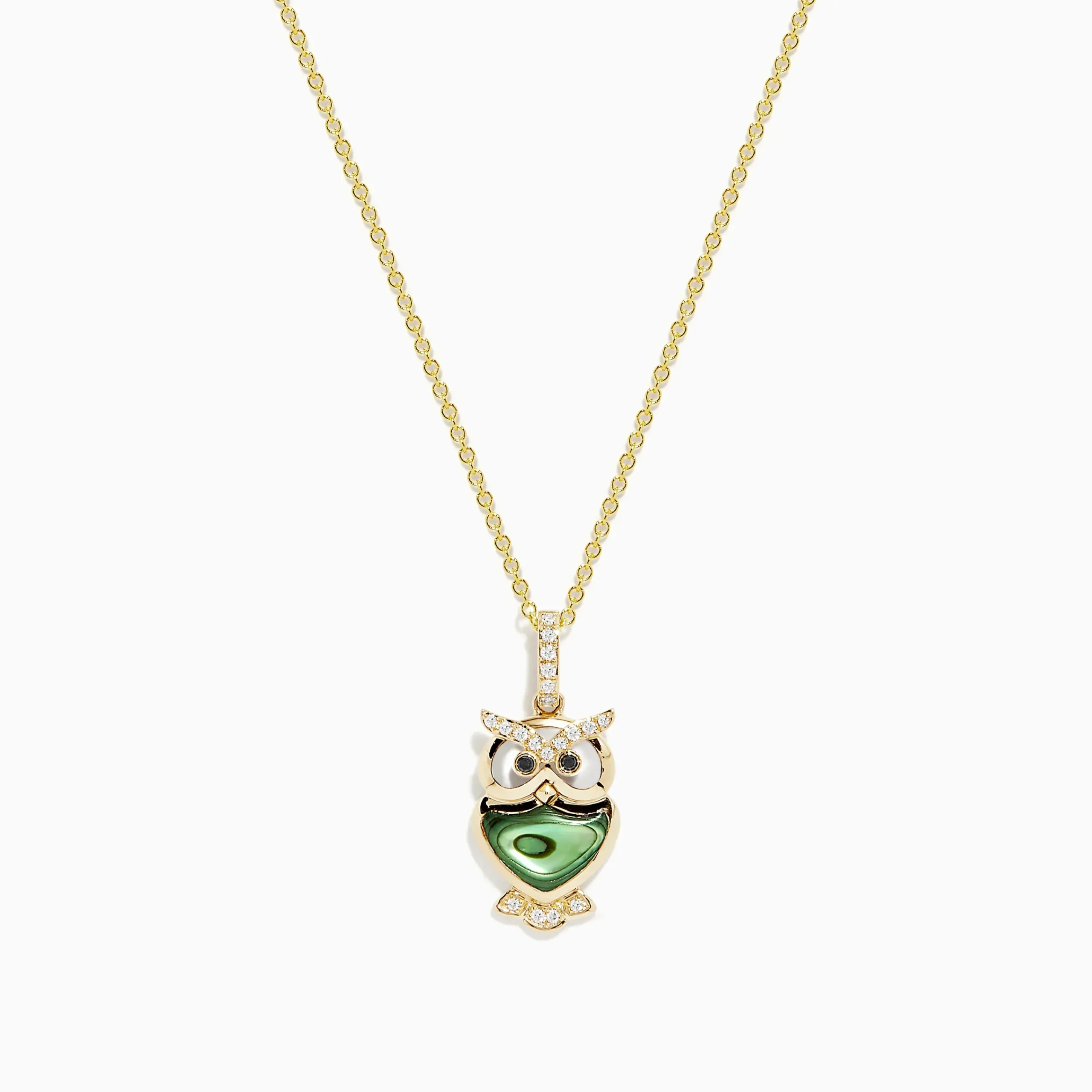 Effy Safari 14K Yellow Gold Abalone and Diamond Owl Pendant