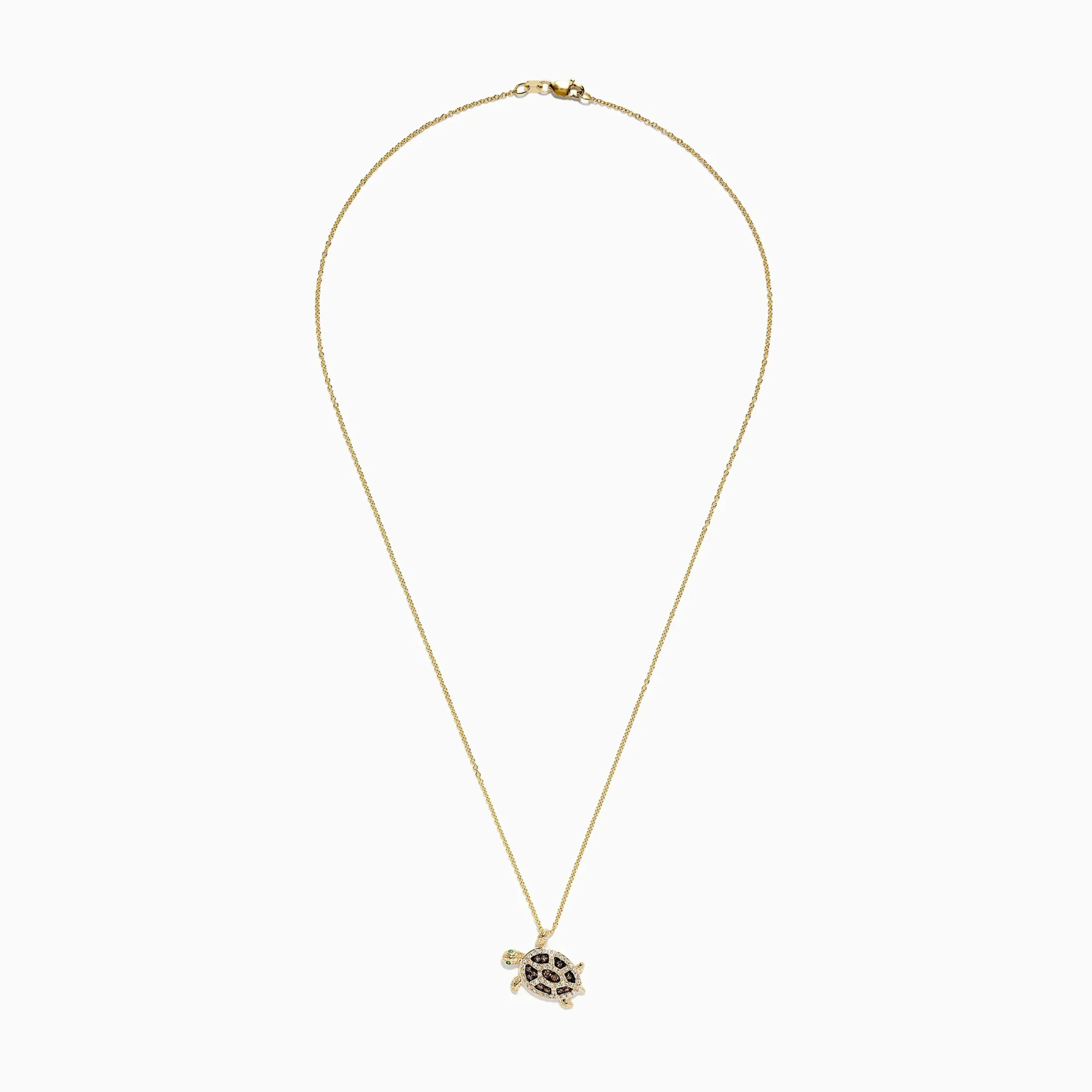 Effy Seaside 14K Gold Espresso & White Diamond Turtle Pendant, 0.42 TCW