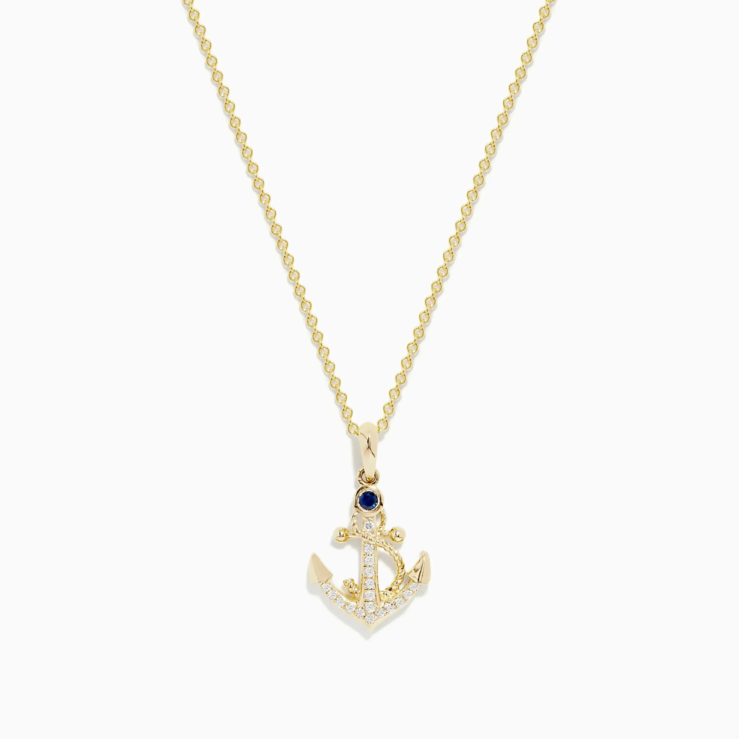 Effy Seaside 14K Yellow Gold Diamond and Sapphire Anchor Pendant