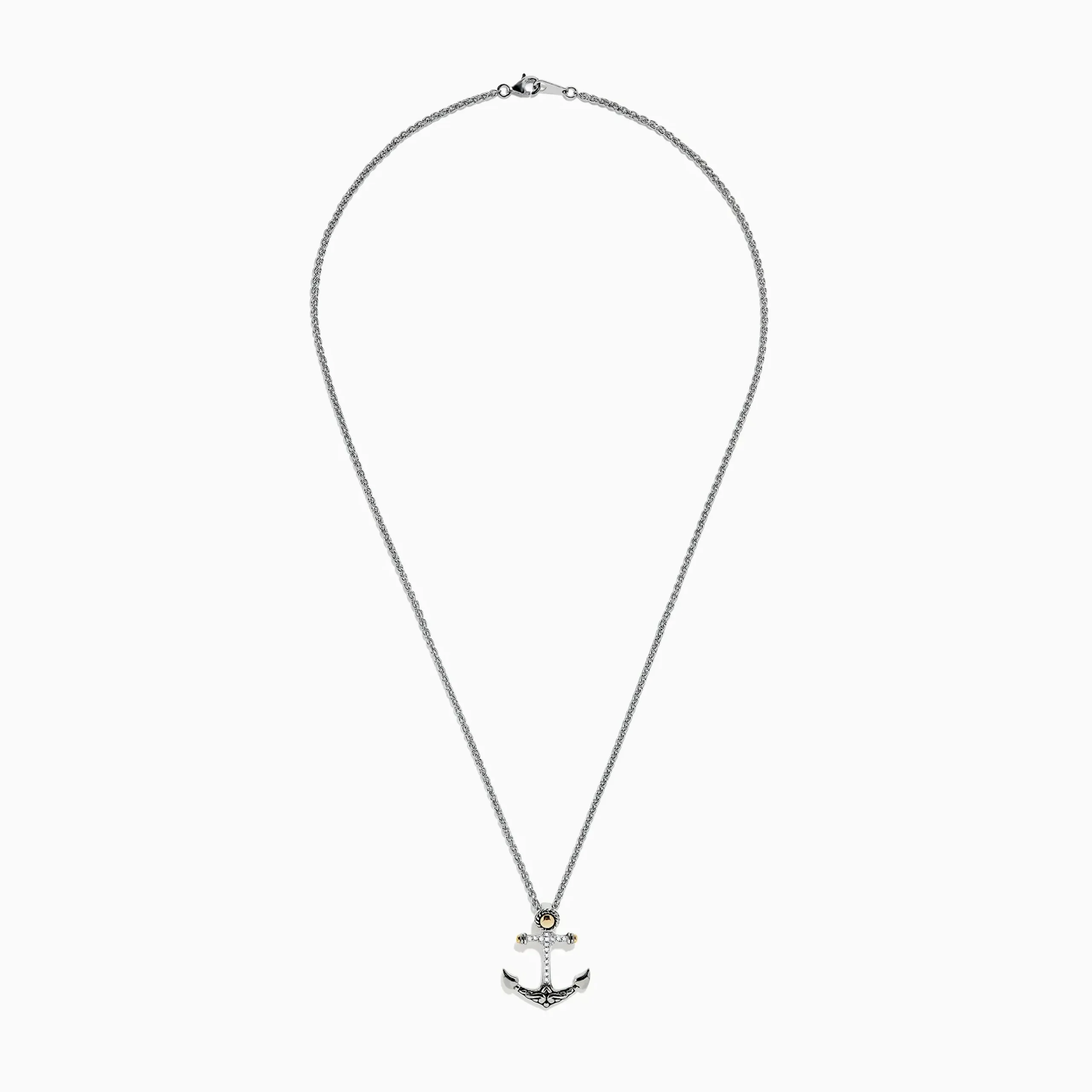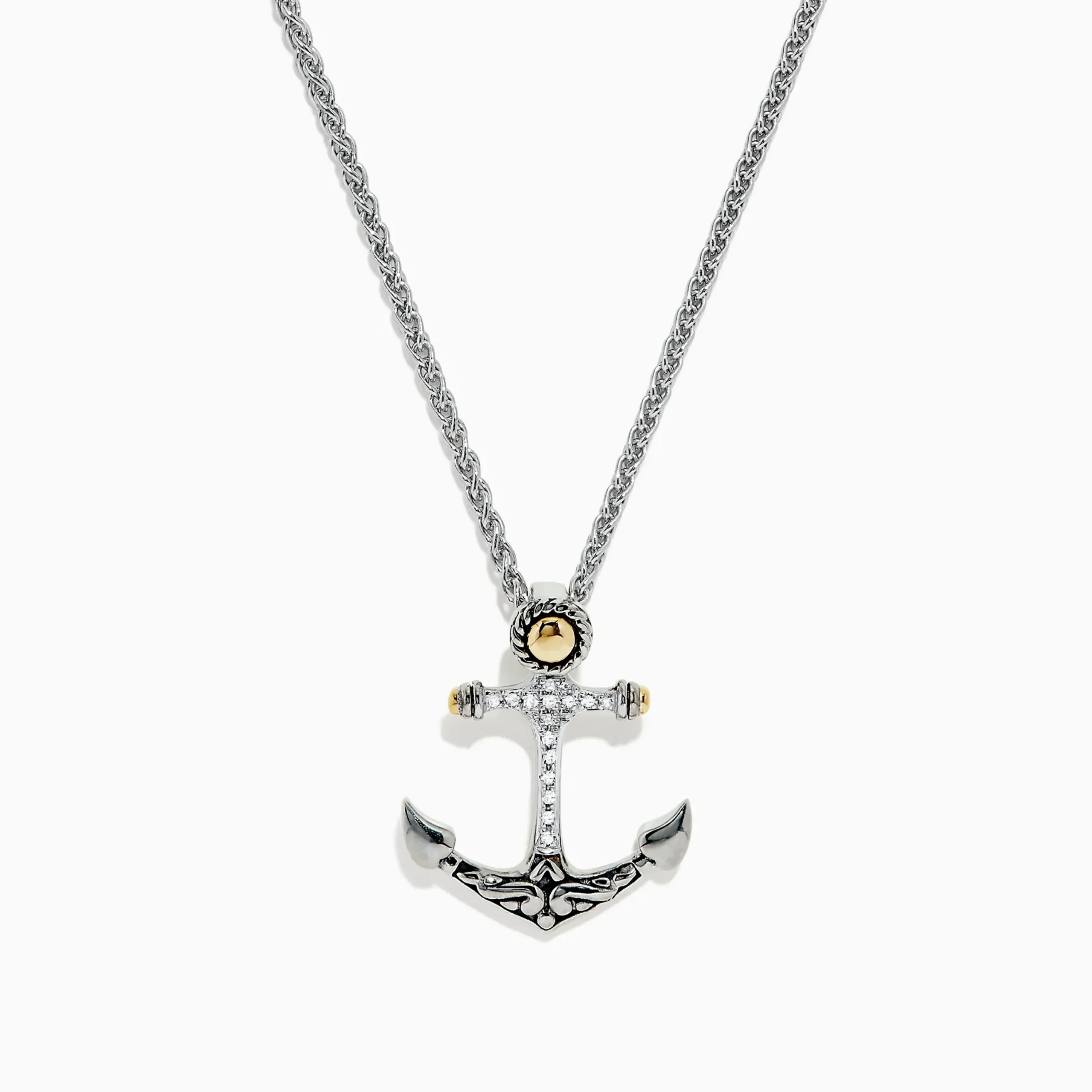 Effy Seaside Sterling Silver & 18K Gold Diamond Anchor Pendant, 0.06 TCW