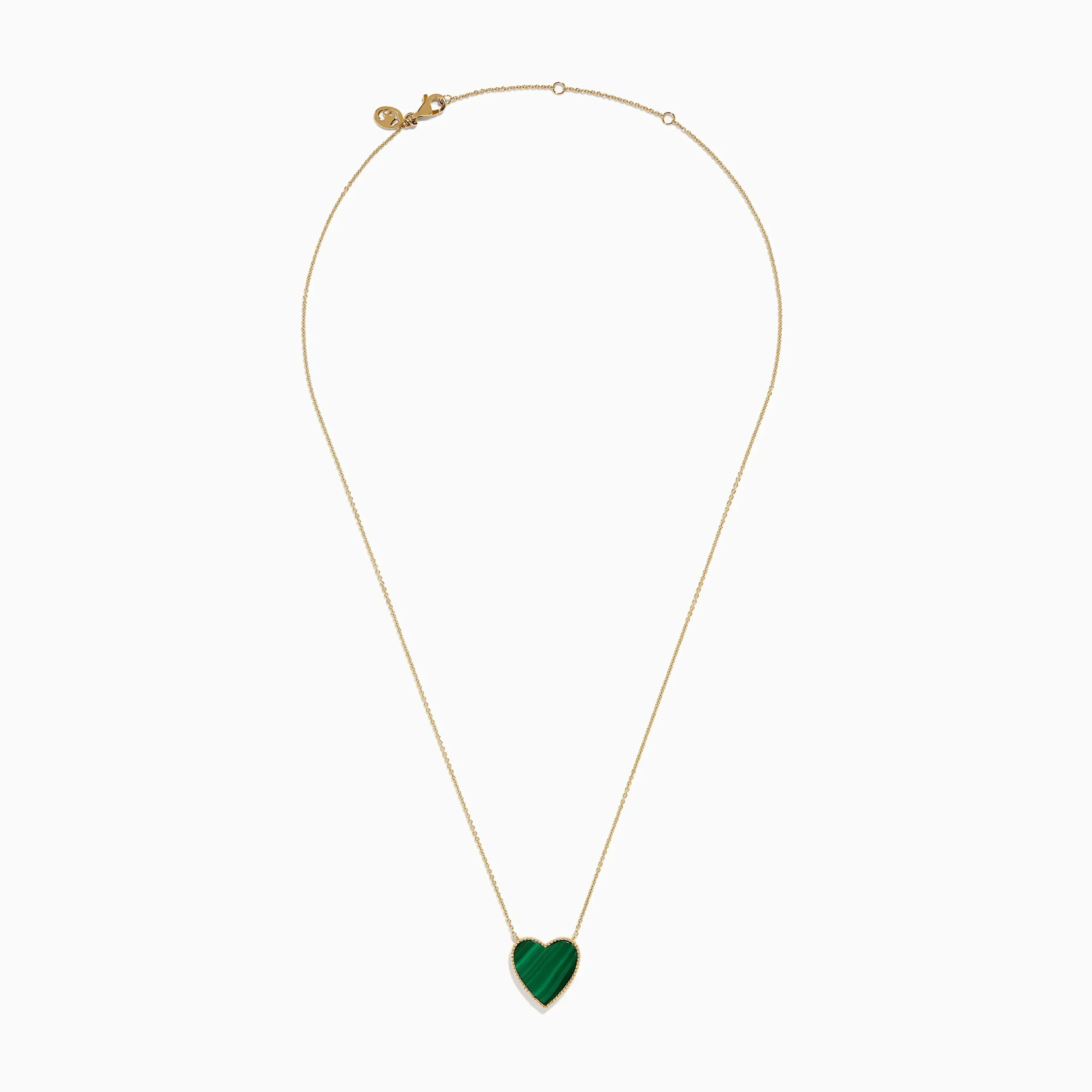 14K Gold Malachite and Diamond Reversible Heart Pendant
