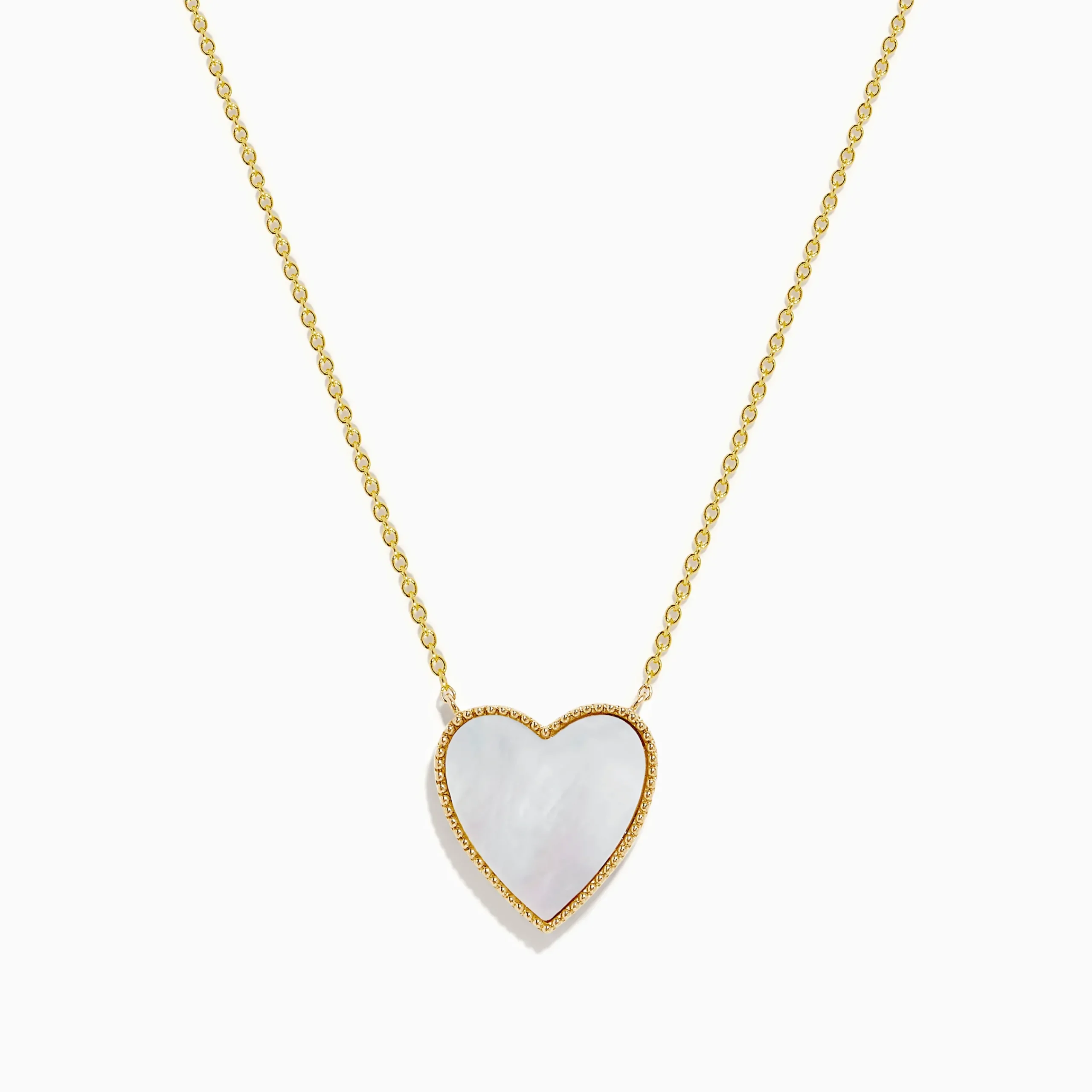 Metal:14K Gold Metal Color:YellowStone: Round Diamond 0.1 Stone 2: Heart Mother of Pearl14K Gold Mother of Pearl and Dia…