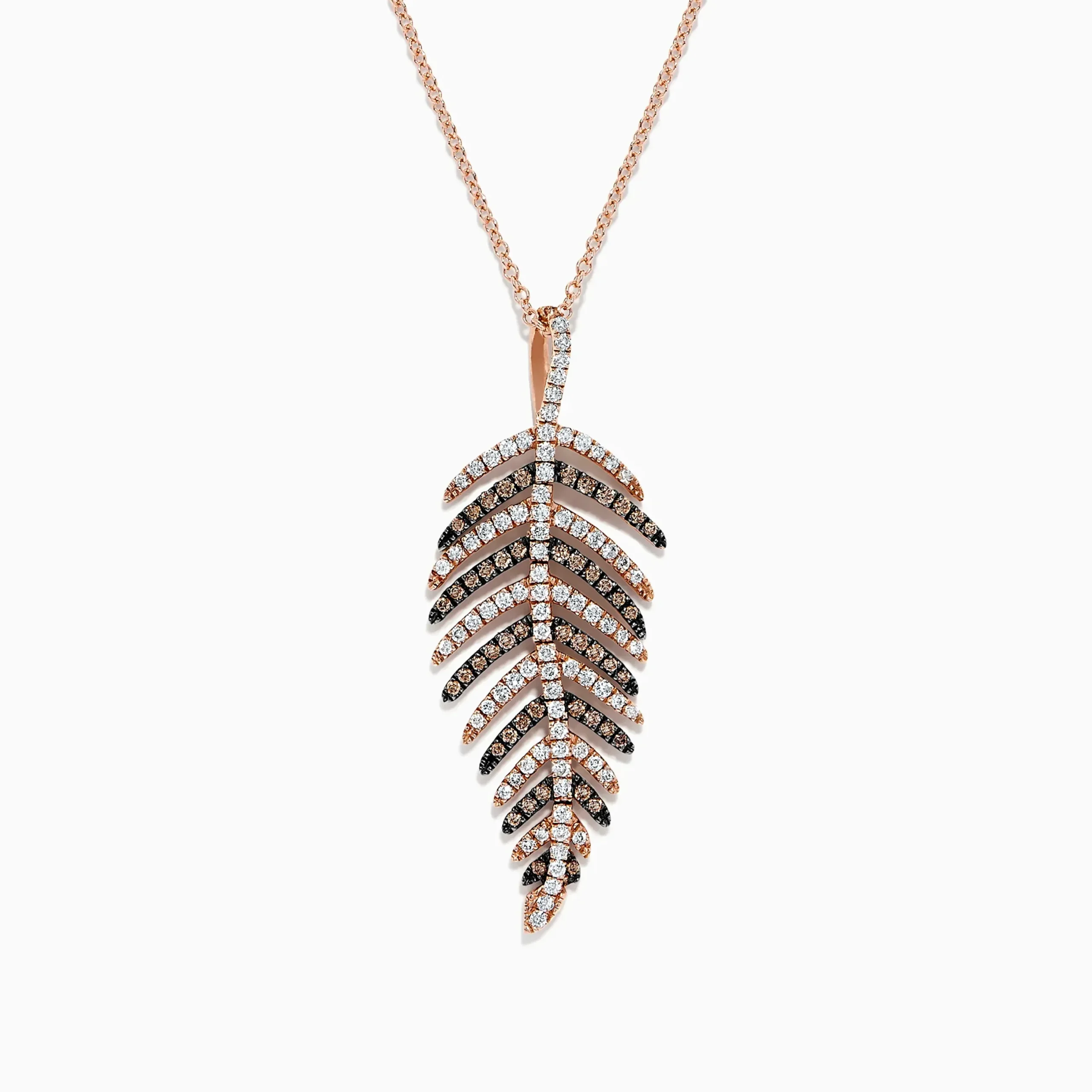 Espresso 14K Rose Gold Brown and White Diamond Pendant, 0.89 TCW