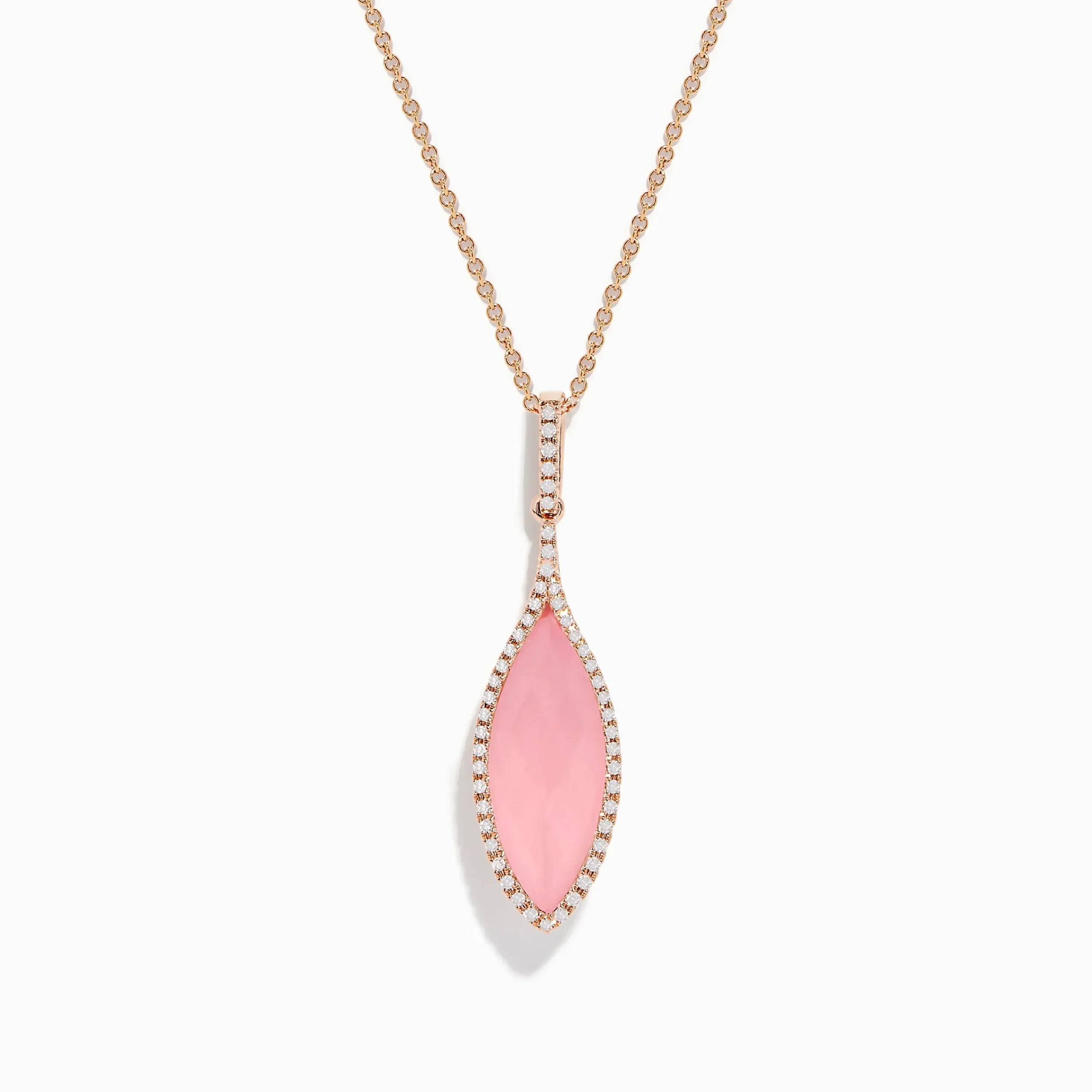 Metal:14K Gold Metal Color:RoseStone: Round Diamond 0.17 Stone 2: Marquise Rose Quartz 4.914K Rose Gold Diamond and Rose…
