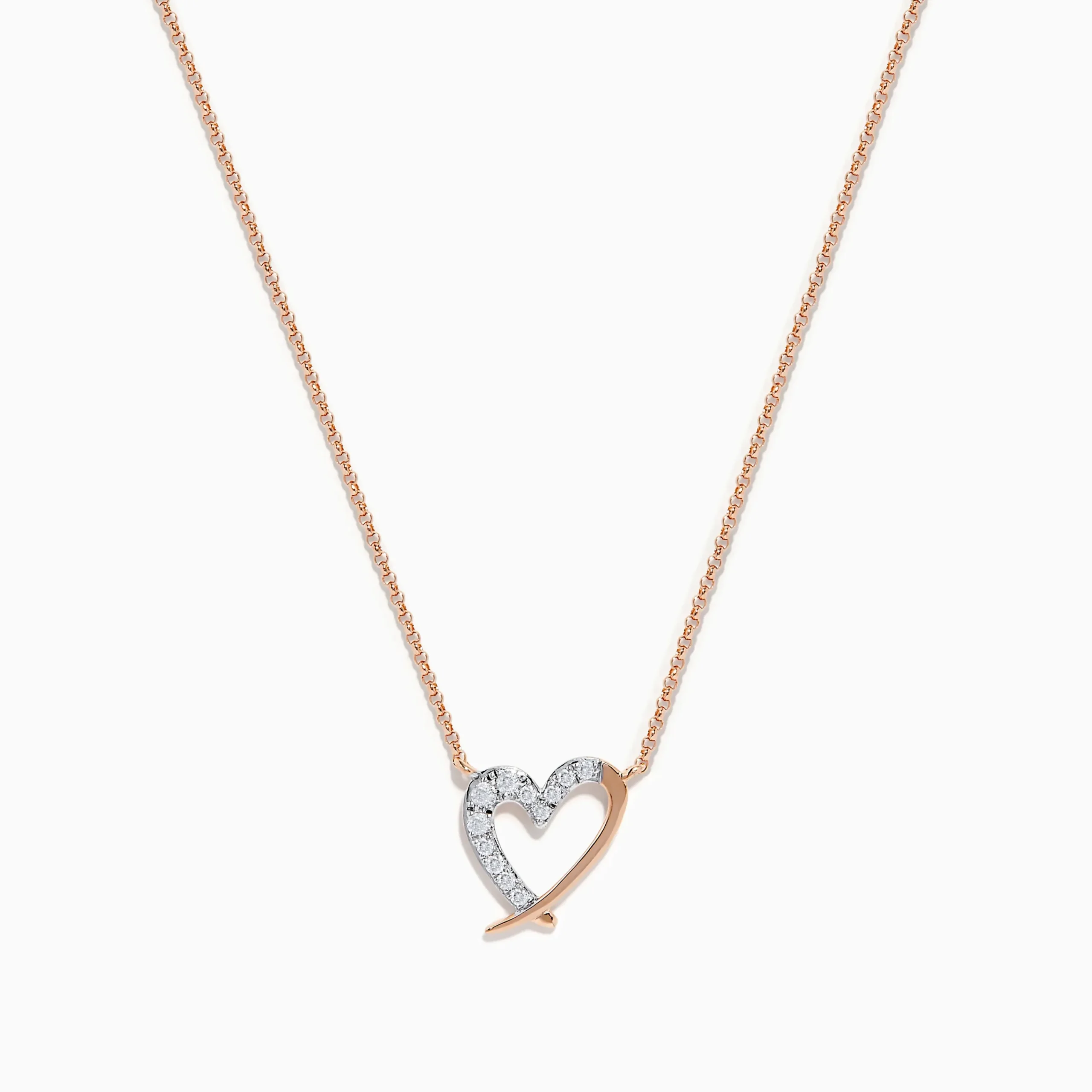 14K Rose Gold Diamond Open Heart Necklace