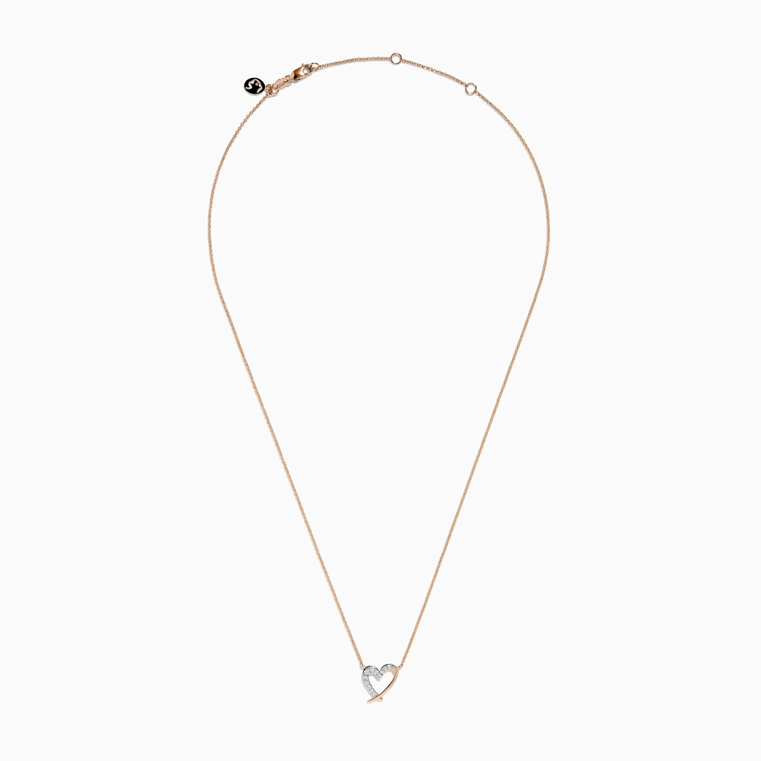 Metal:14K Gold Metal Color:RoseStone: Round Diamond 0.1214K Rose Gold Diamond Open Heart Necklace