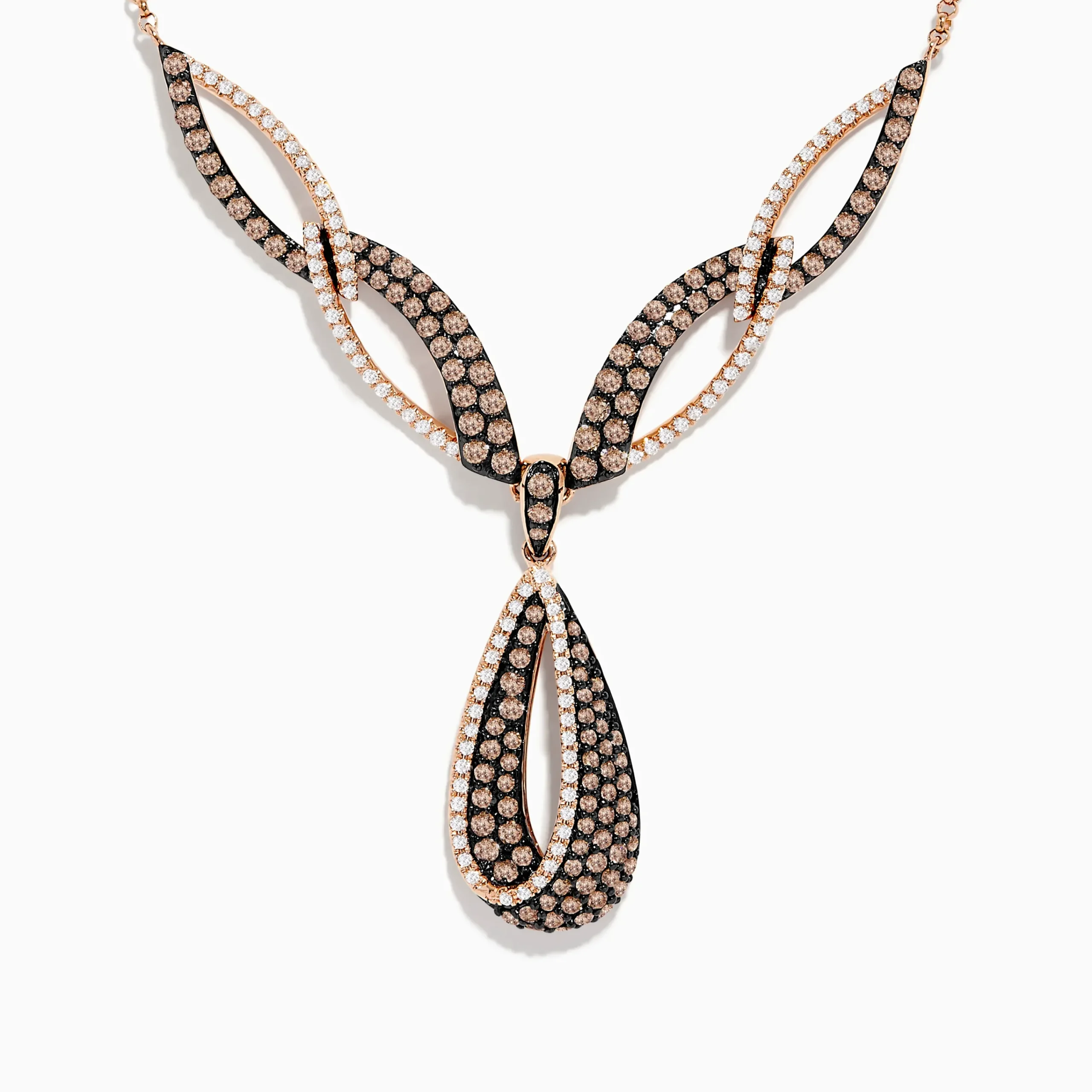 14K Rose Gold Espresso and White Diamond Drop Necklace