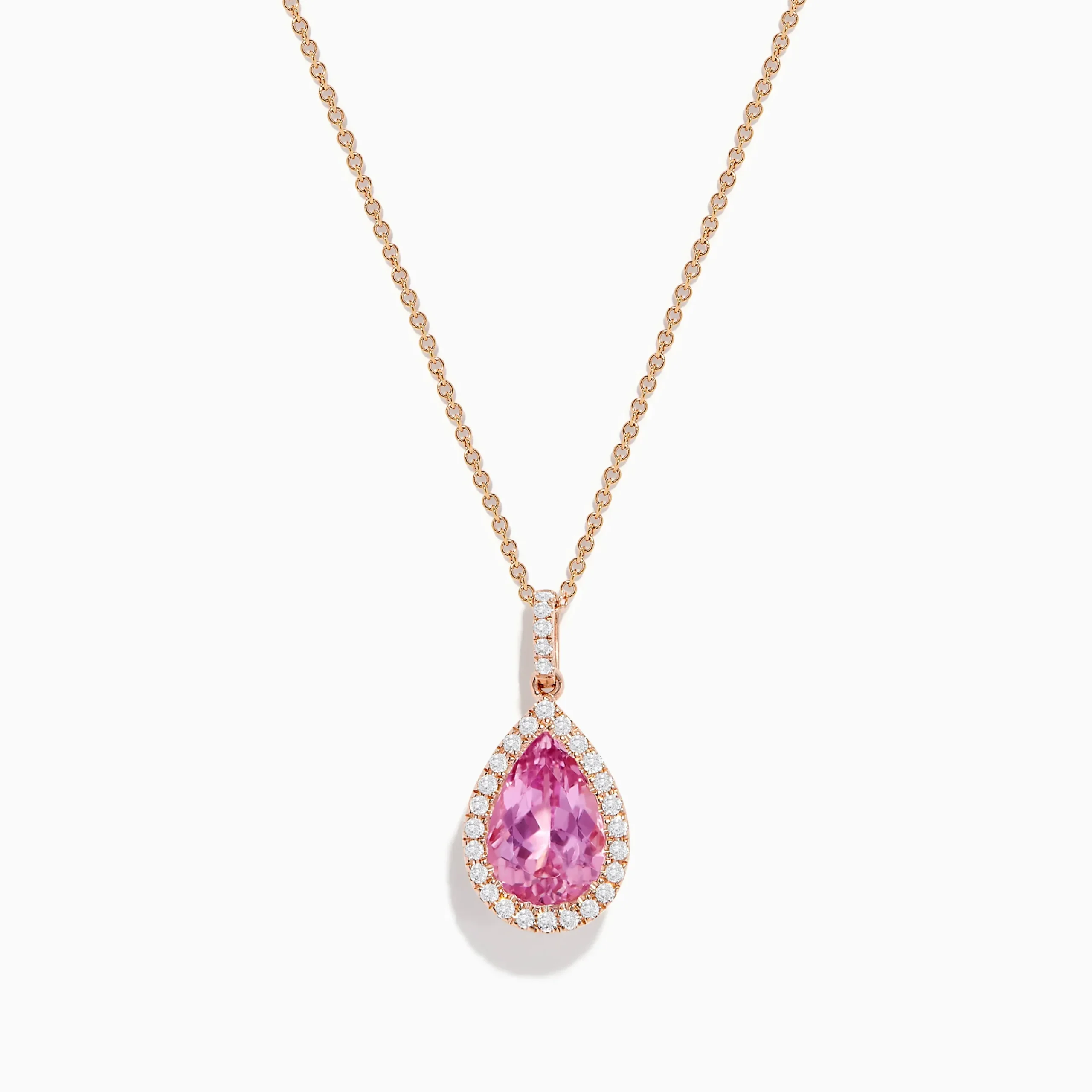 Metal:14K Gold Metal Color:RoseStone: Round Diamond 0.27 Stone 2: Pear Kunzite 4.114K Rose Gold Kunzite and Diamond Pend…