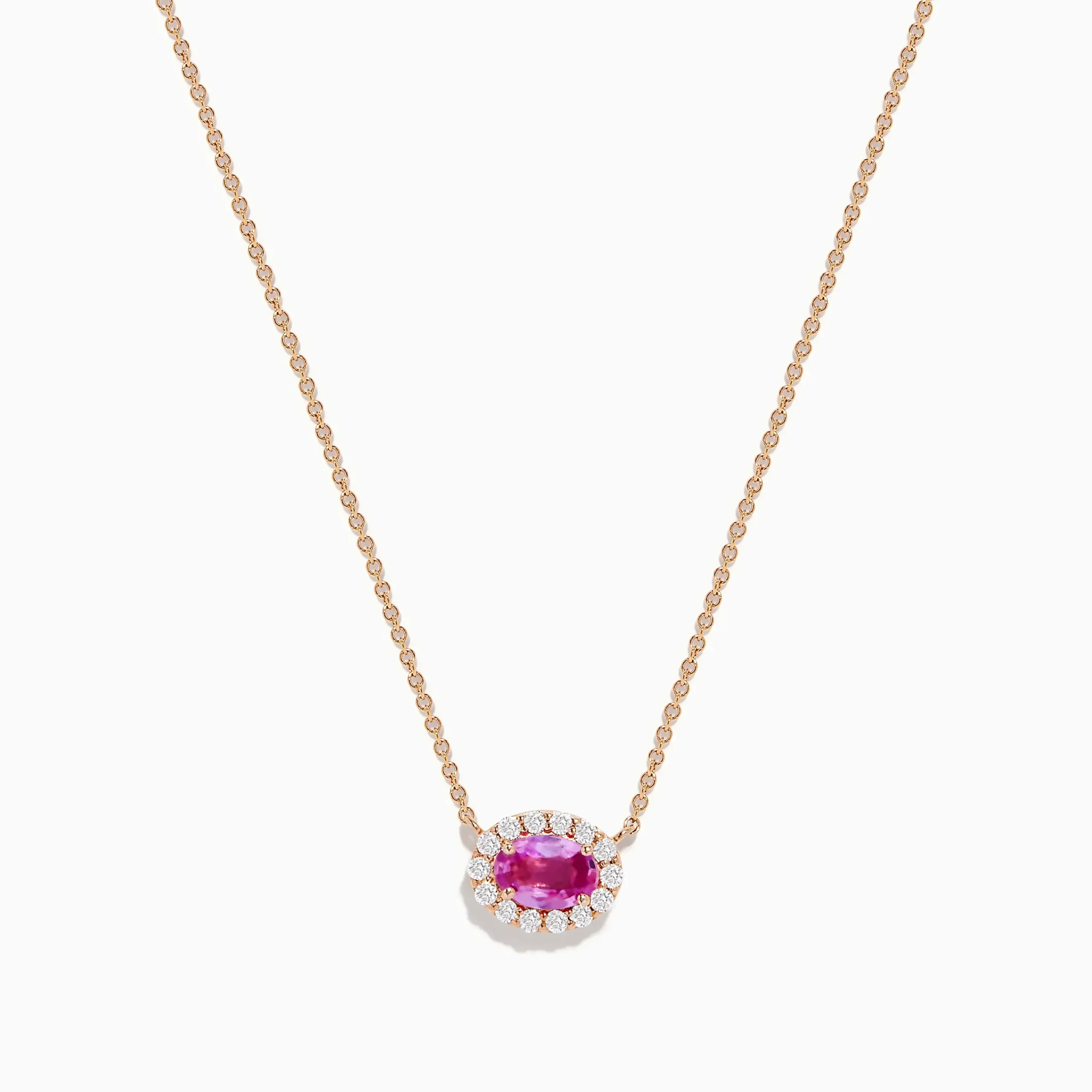 14K Rose Gold Pink Sapphire and Diamond Necklace