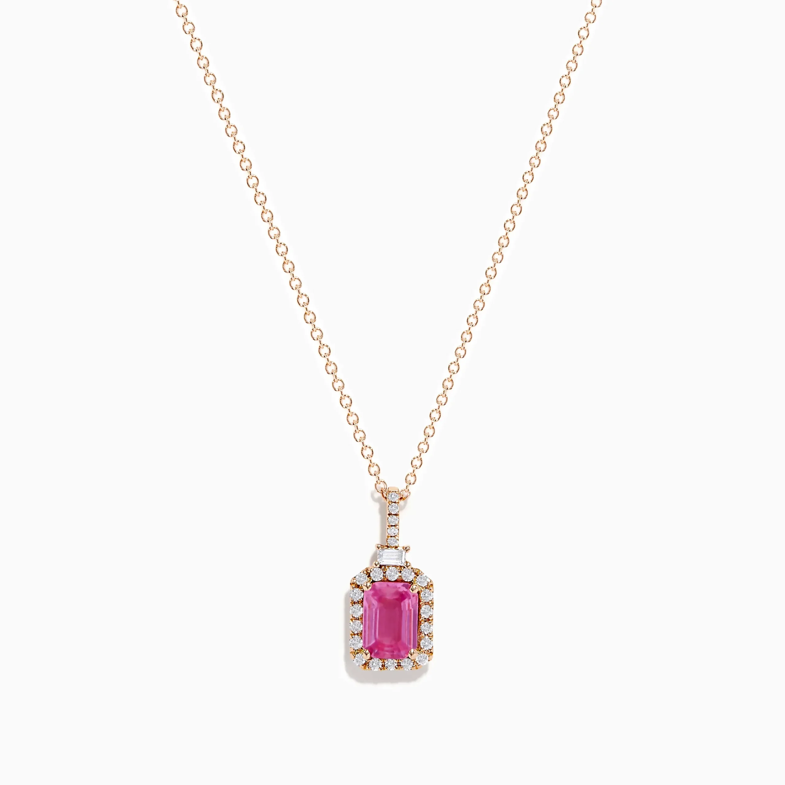 14K Rose Gold Pink Sapphire and Diamond Pendant