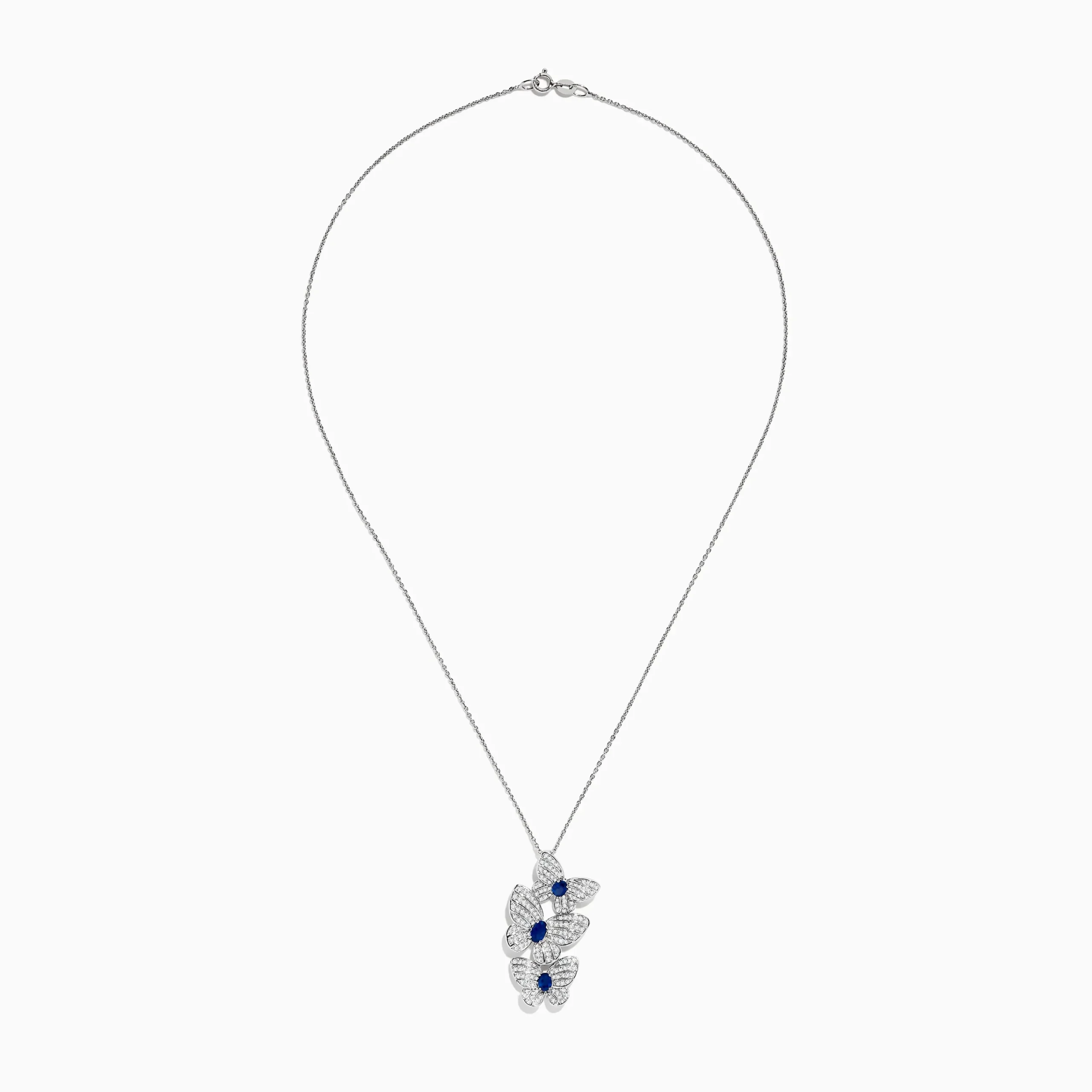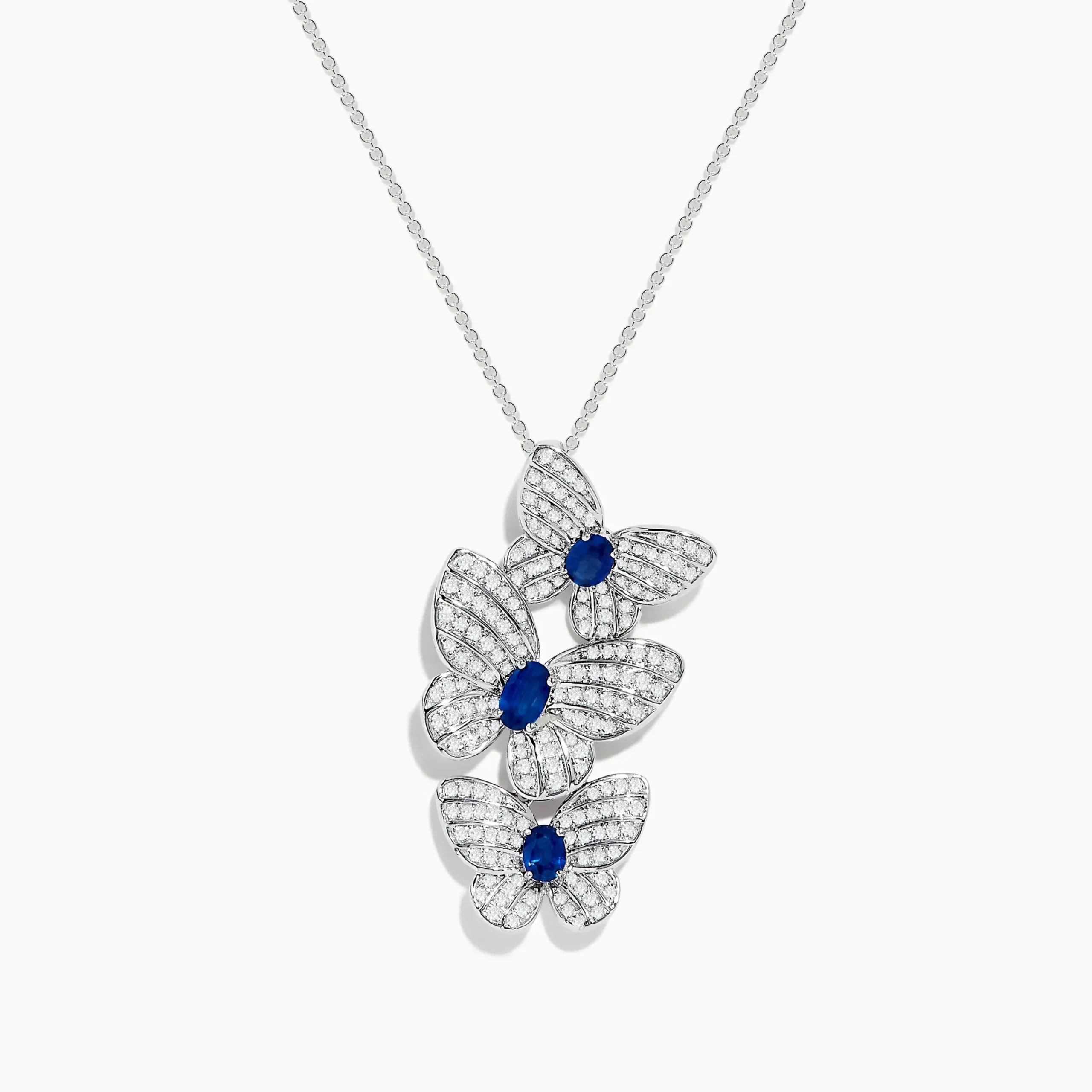 Effy 14K White Gold Blue Sapphire and Diamond Multi Butterfly Pendant