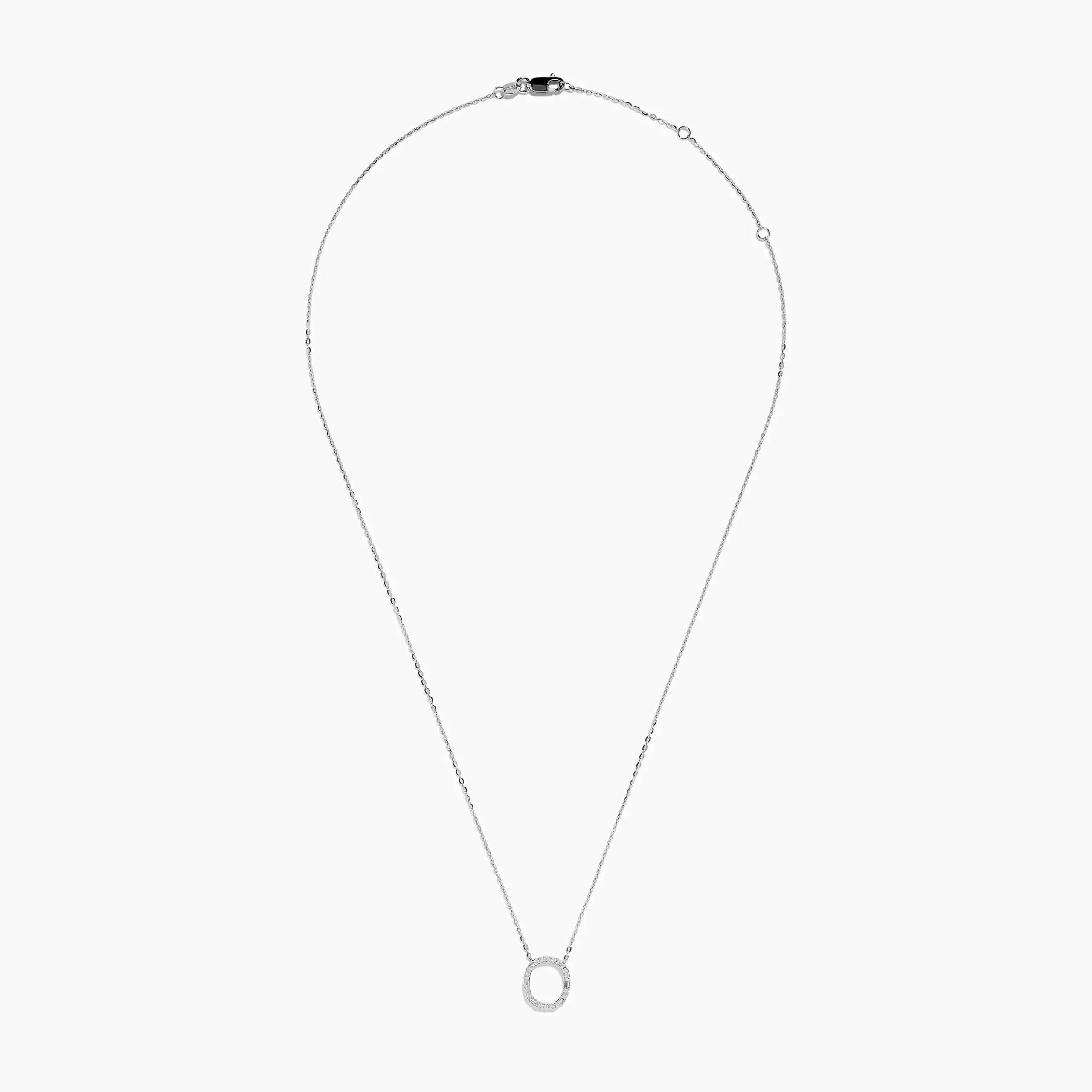 Metal:14K Gold Metal Color:WhiteStone: Multi Shape Diamond 0.17Effy 14K White Gold Diamond Initial “O” Pendant