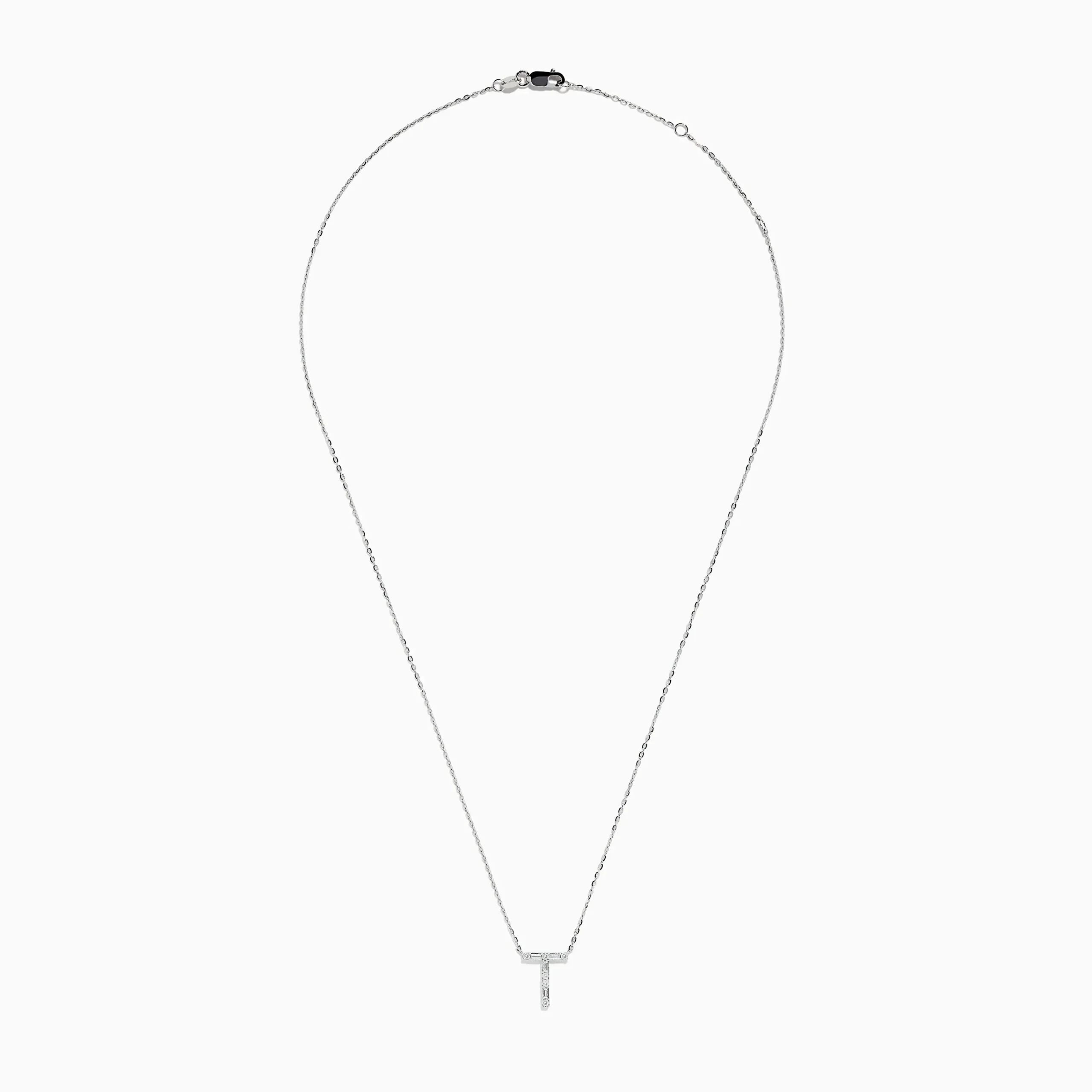 Metal:14K Gold Metal Color:WhiteStone: Multi Shape Diamond 0.19Effy 14K White Gold Diamond Initial “T” Pendant