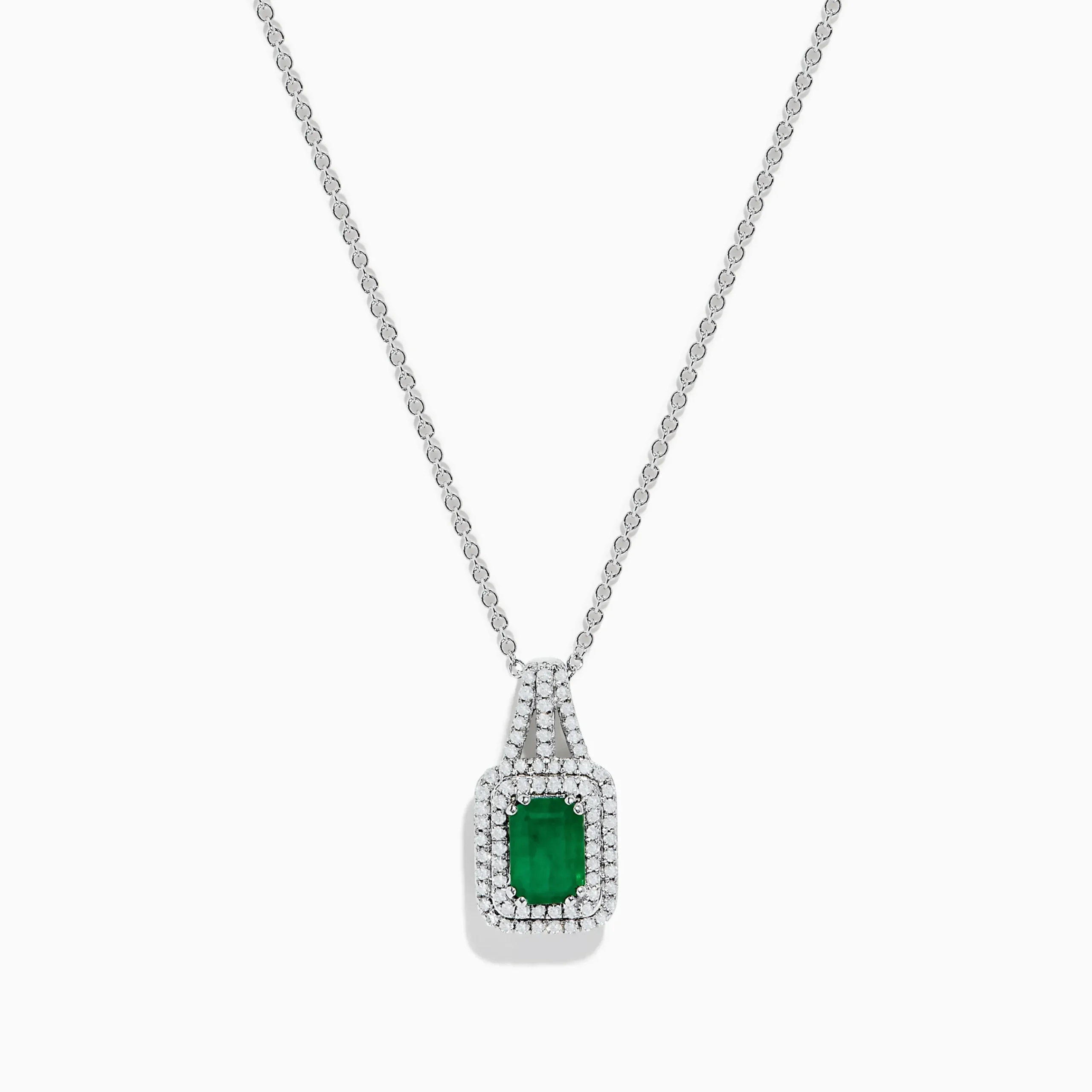 Effy 14K White Gold Emerald & Diamond Pendant, 1.25 TCW