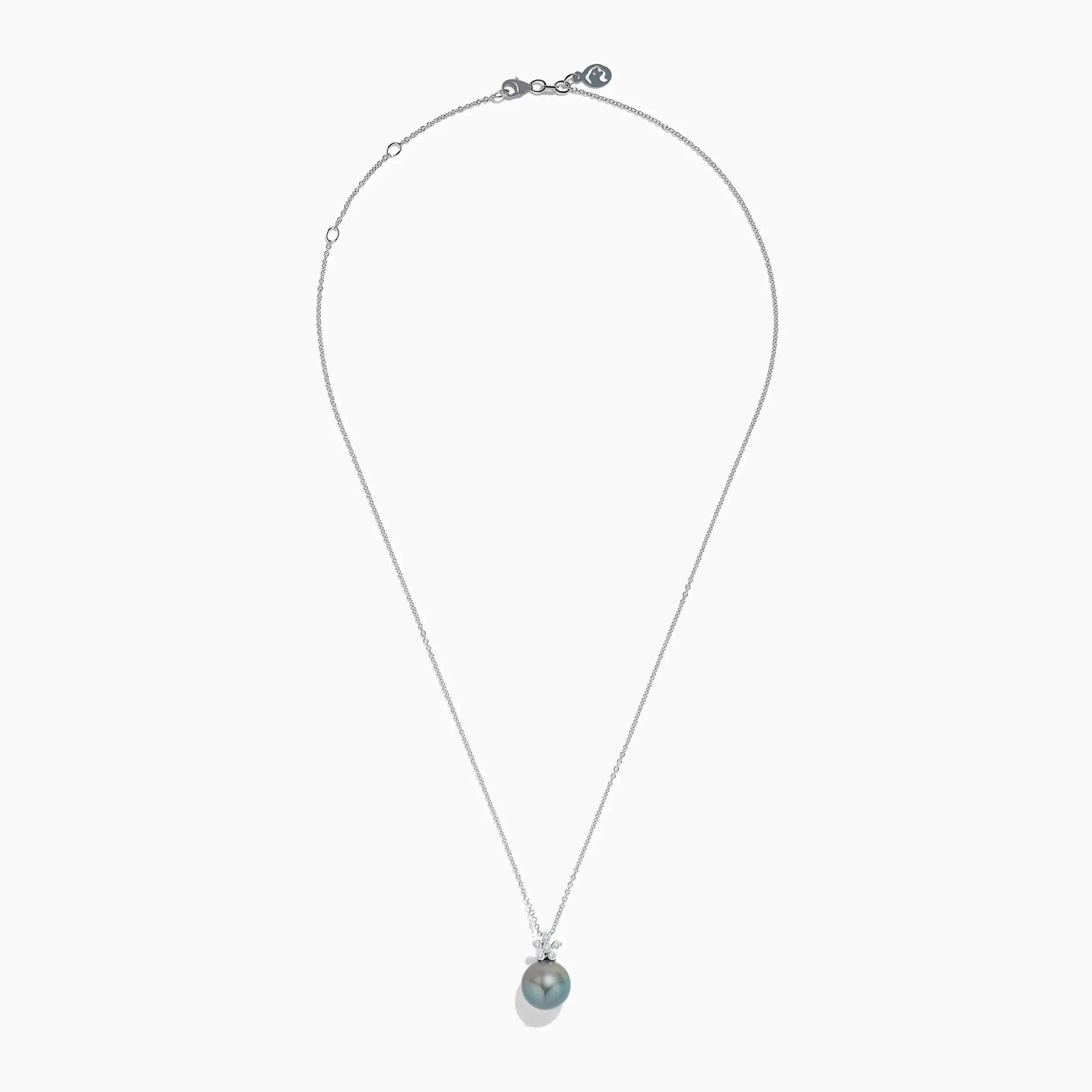 14K White Gold Tahitian Pearl and Diamond Pendant
