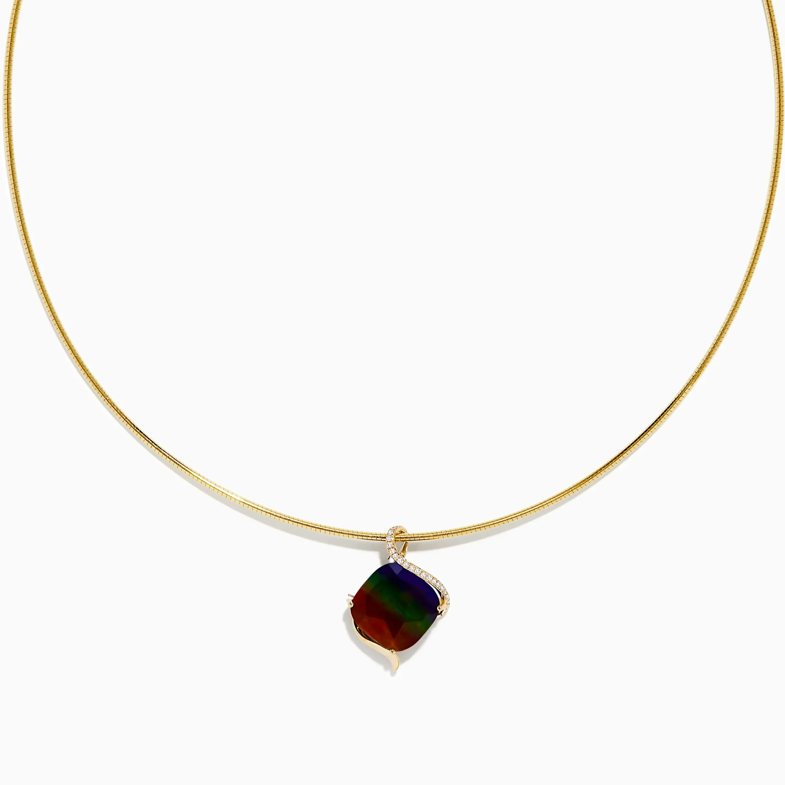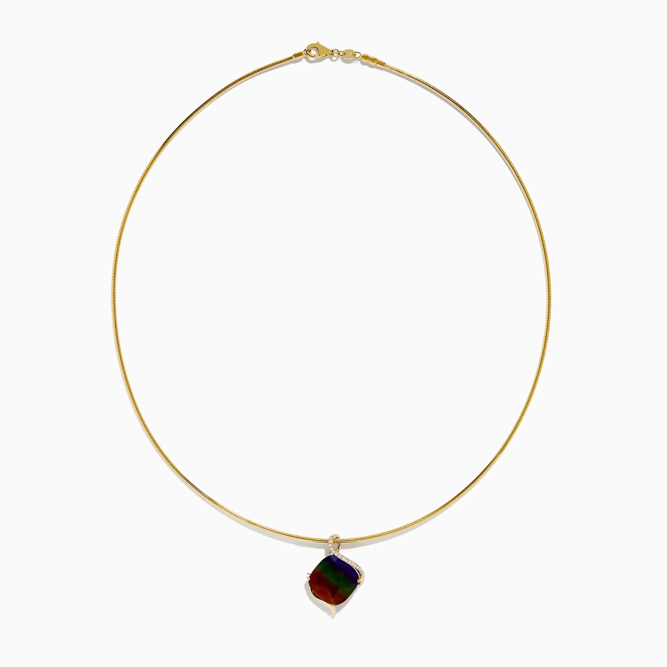 14K Yellow Gold Ammolite and Diamond Snake Chain Pendant