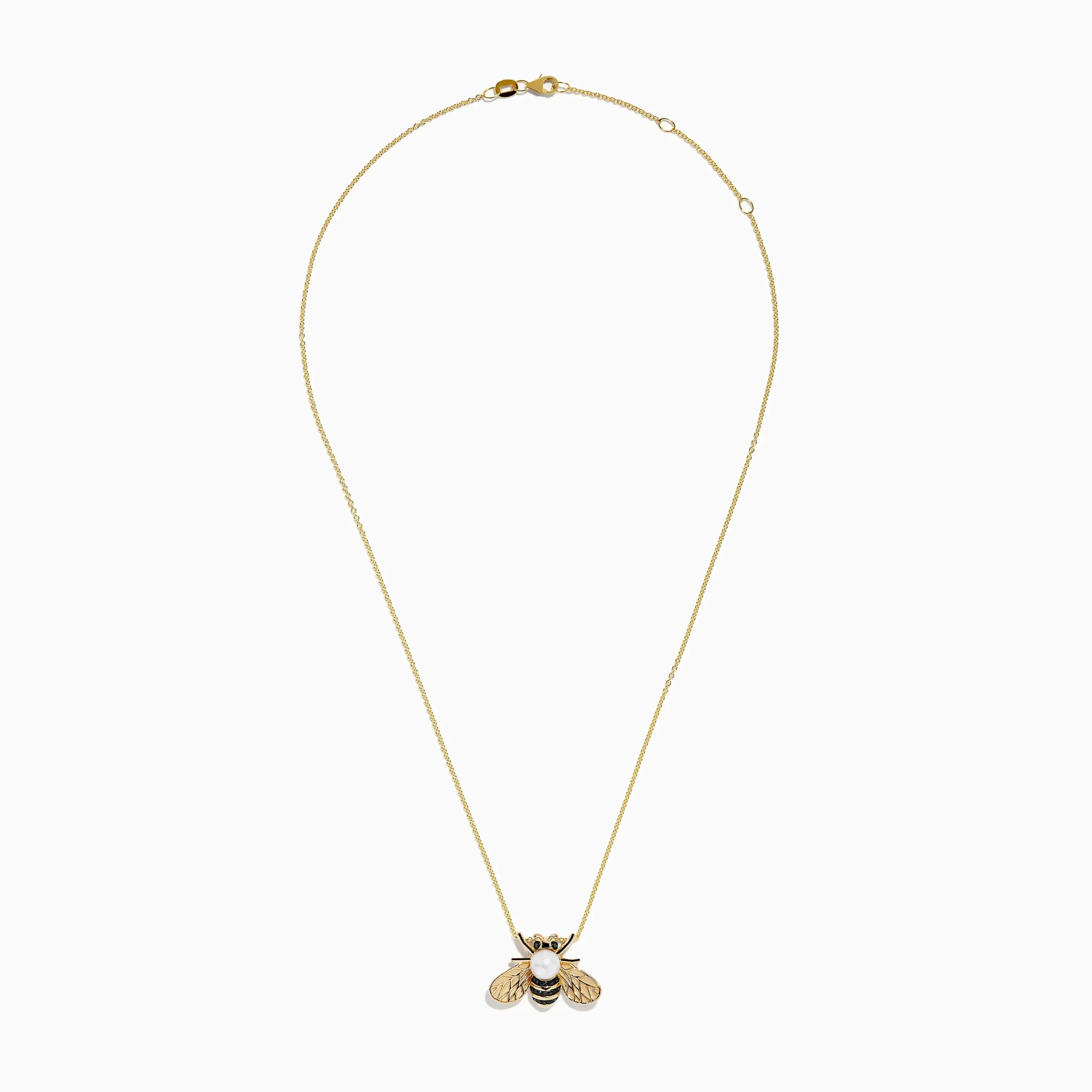 14K Yellow Gold Black Diamond, Freshwater Pearl Bee Pendant