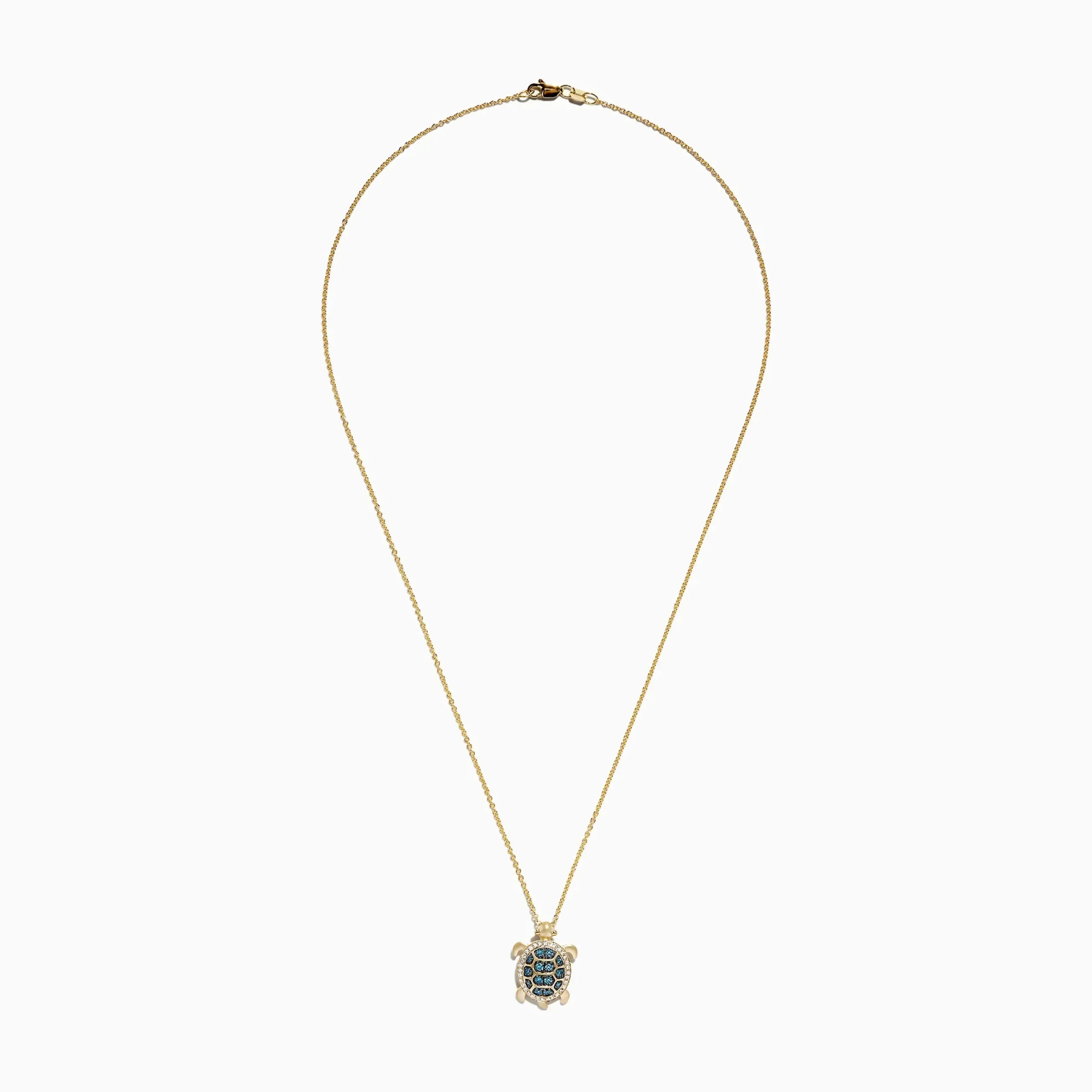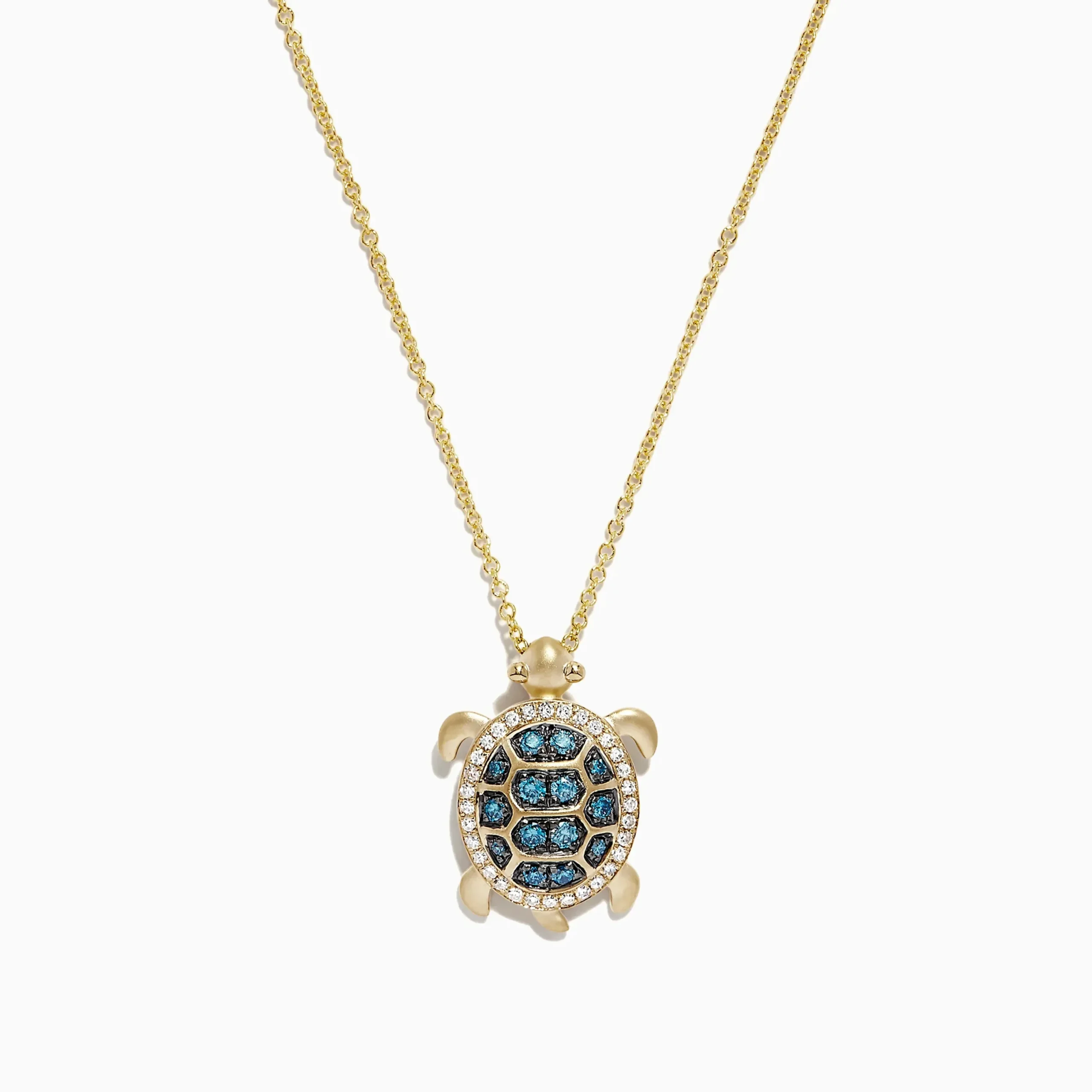 Effy 14K Yellow Gold Blue and White Diamond Sea Turtle Pendant, 0.41 TCW