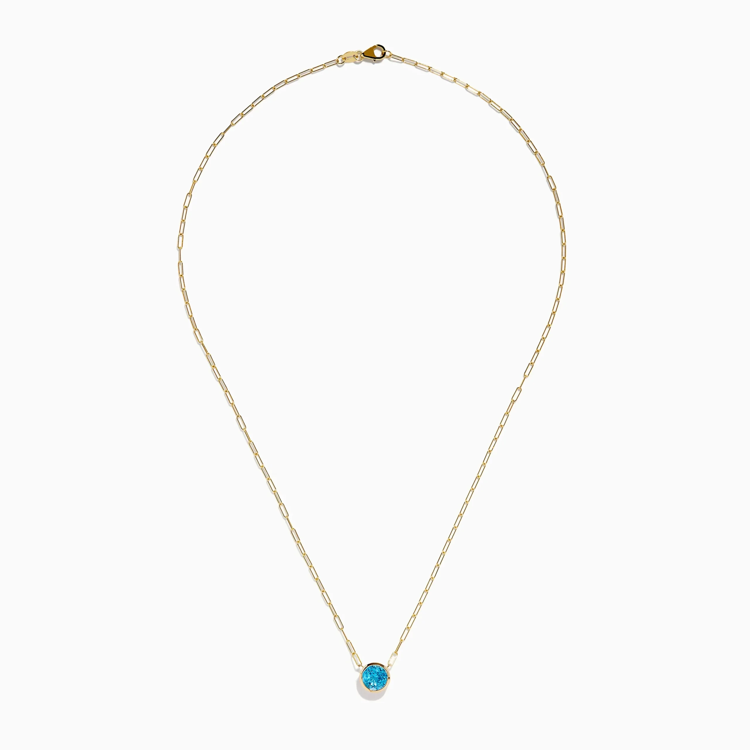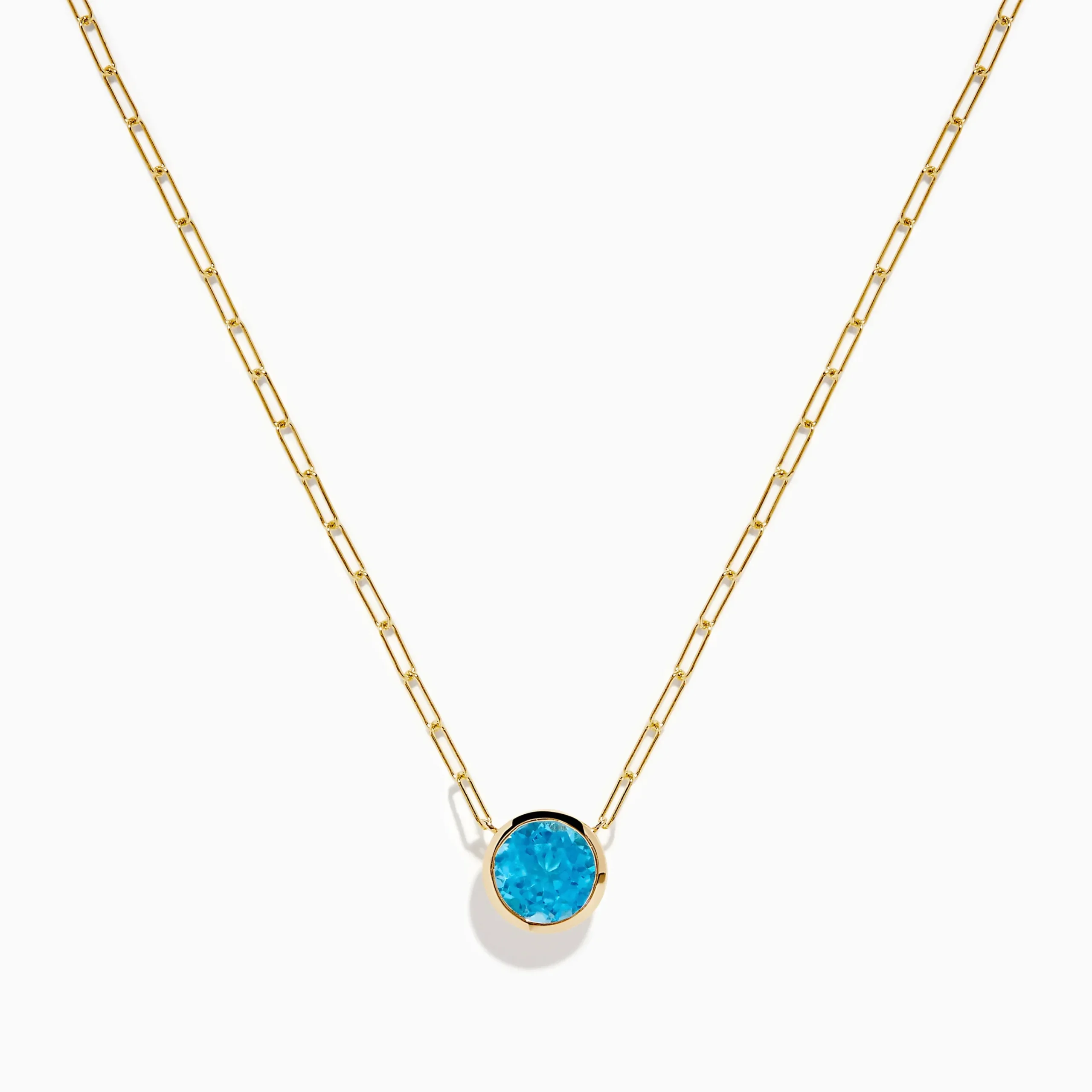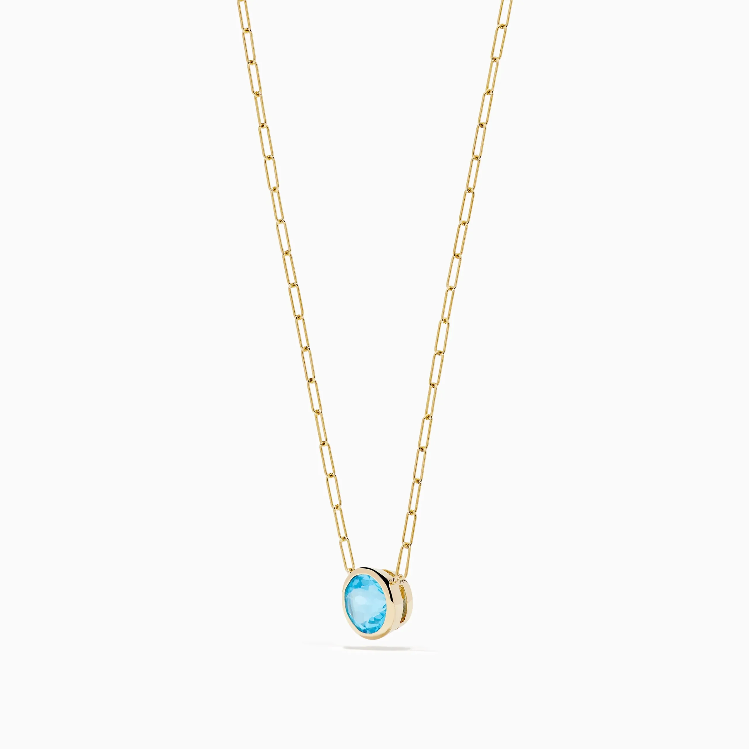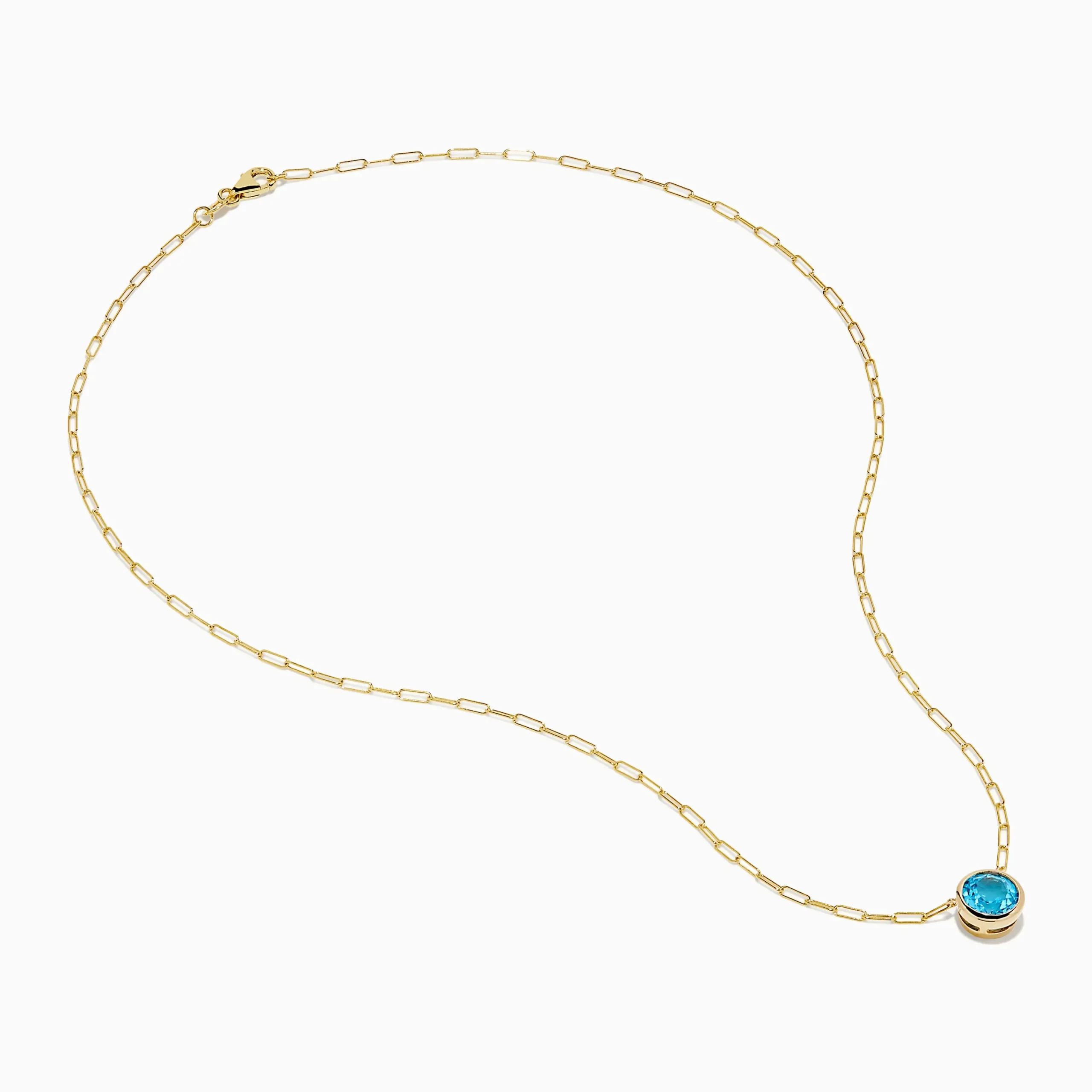 Metal:14K Gold Metal Color:YellowStone: Round Blue Topaz 1.5514K Yellow Gold Blue Topaz Bezel Paperclip Chain Pendant