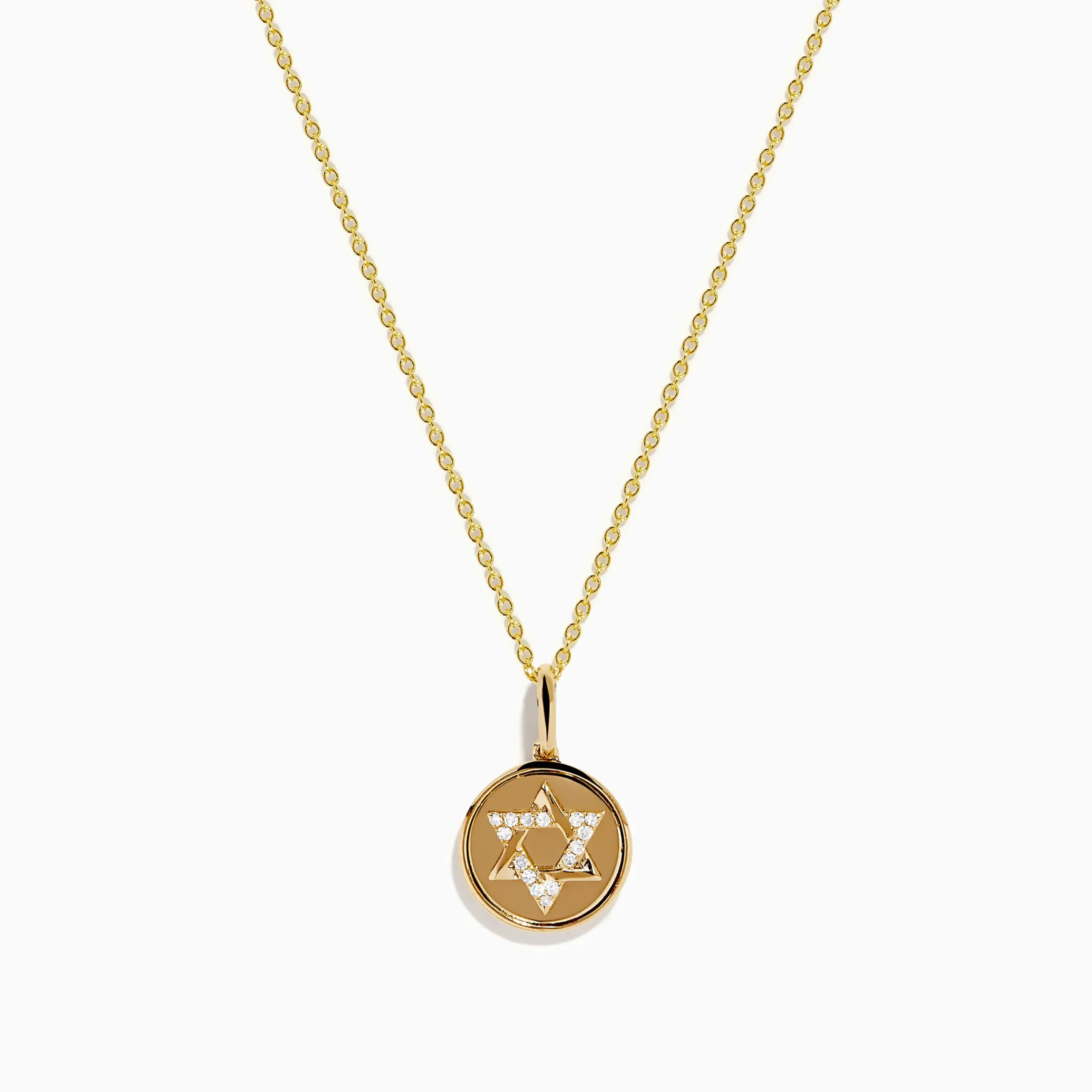 Metal:14K Gold Metal Color:YellowStone: Round Diamond 0.0614K Yellow Gold Diamond Star of David Pendant