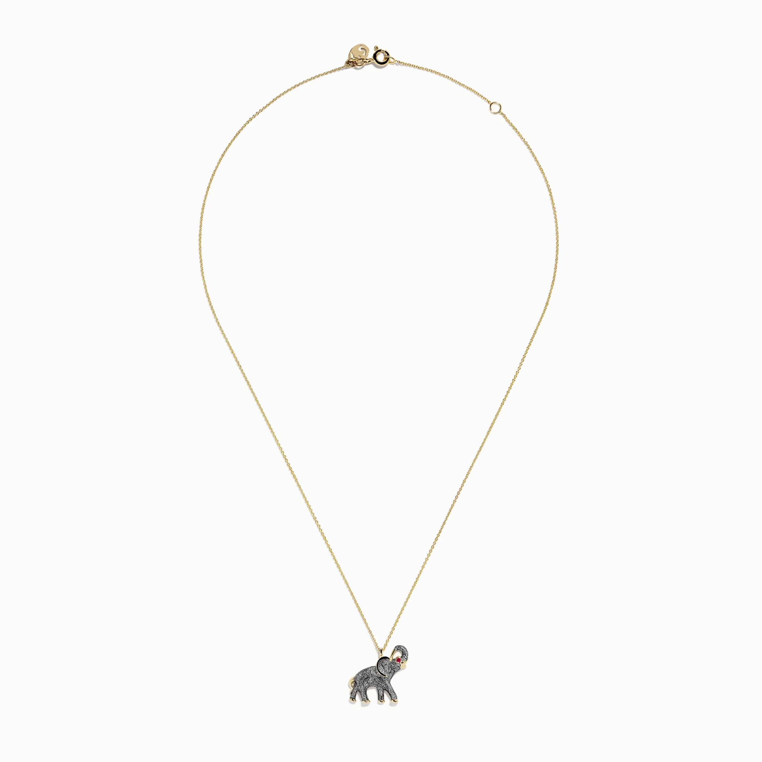 Metal:14K Gold Metal Color:YellowStone: Round Ruby 0.0214K Yellow Gold Enamel Elephant Necklace