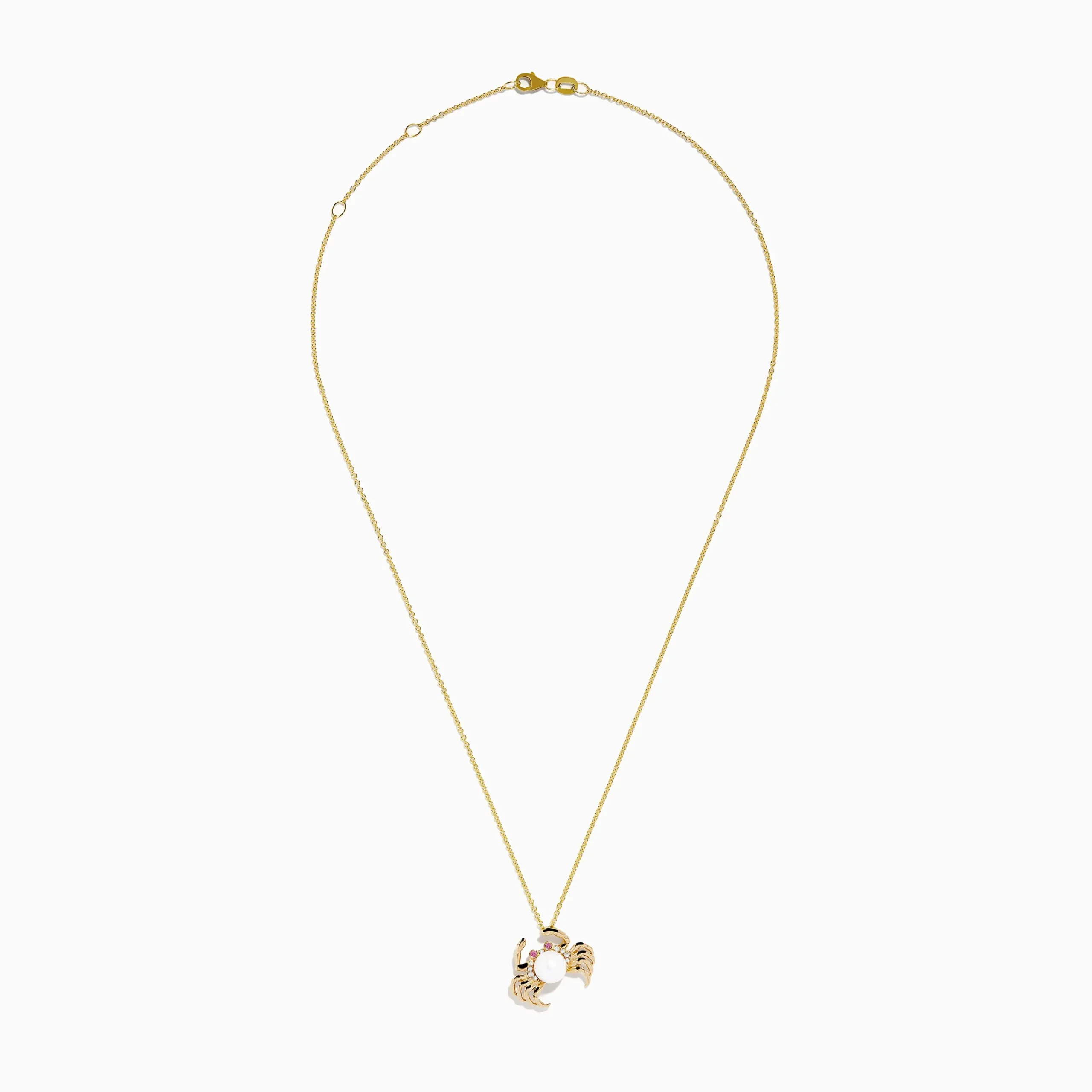 14K Yellow Gold Freshwater Pearl, Pink Sapphire and Diamond Crab Pendant